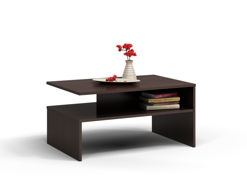 modernus, minimalistinio dizaino staliukas;apačioje erdvi lentyna Jūsų norimiems daiktams pasidėti;pagamintas iš 16 mm storio laminuotos medžio drožlių plokštės (MDP); briaunos dailintos ABS;išmatavimai: plotis - 60 cm, ilgis - 90 cm, aukštis - 45 cm;spalva: tamsiai ruda (wenge);