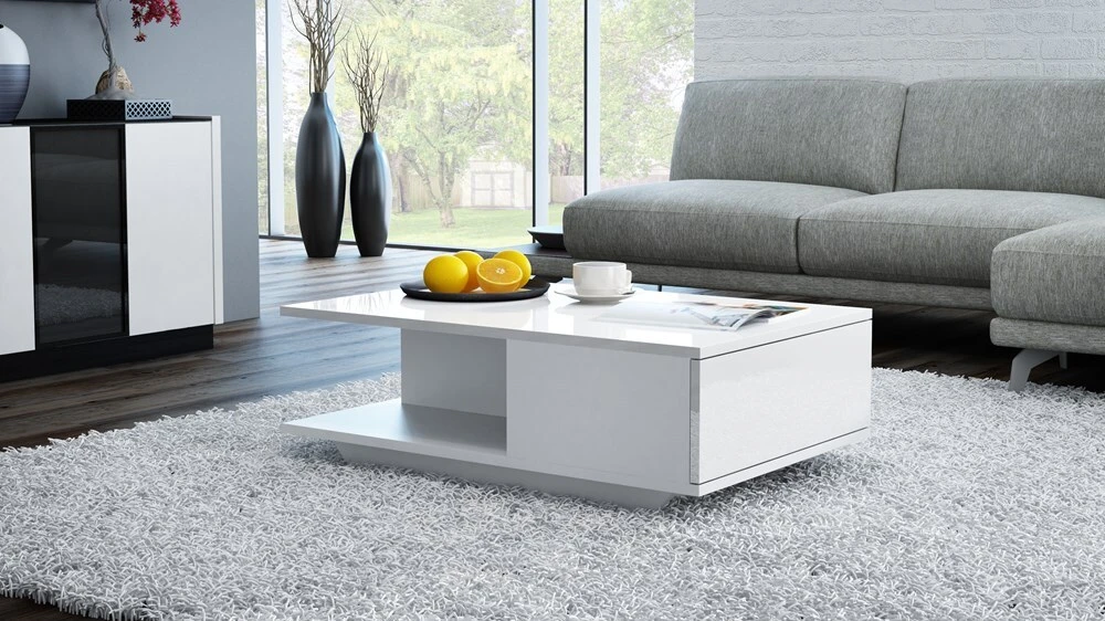 modernus staliukas;apačioje erdvi lentyna ir uždaras skyrius Jūsų norimiems daiktams pasidėti;pagamintas iš: 16 mm storio laminuotos medžio drožlių plokštės (MDP); uždaro skyriaus durelės su Tip-On mechanizmu;išmatavimai: plotis - 60 cm, ilgis - 90 cm, aukštis - 42 cm;spalva: blizgi balta;