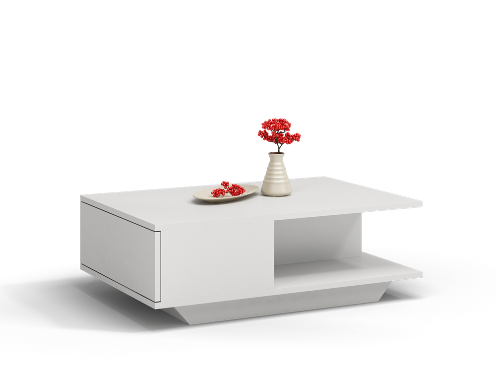 modernus staliukas;apačioje erdvi lentyna ir uždaras skyrius Jūsų norimiems daiktams pasidėti;pagamintas iš: 16 mm storio laminuotos medžio drožlių plokštės (MDP); uždaro skyriaus durelės su Tip-On mechanizmu;išmatavimai: plotis - 60 cm, ilgis - 90 cm, aukštis - 42 cm;spalva: balta (matinė);