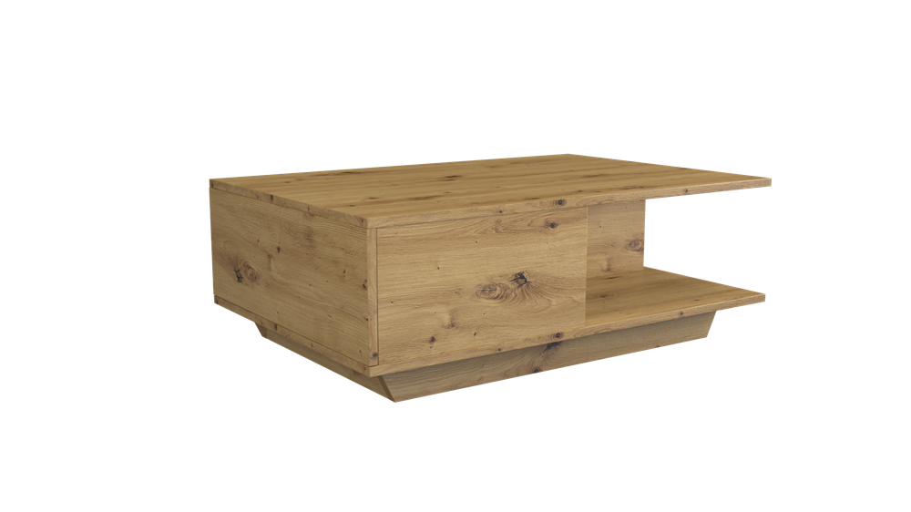 modernus staliukas;apačioje erdvi lentyna ir uždaras skyrius Jūsų norimiems daiktams pasidėti;pagamintas iš: 16 mm storio laminuotos medžio drožlių plokštės (MDP); uždaro skyriaus durelės su Tip-On mechanizmu;išmatavimai: plotis - 60 cm, ilgis - 90 cm, aukštis - 42 cm;spalva: ruda (artisan oak);