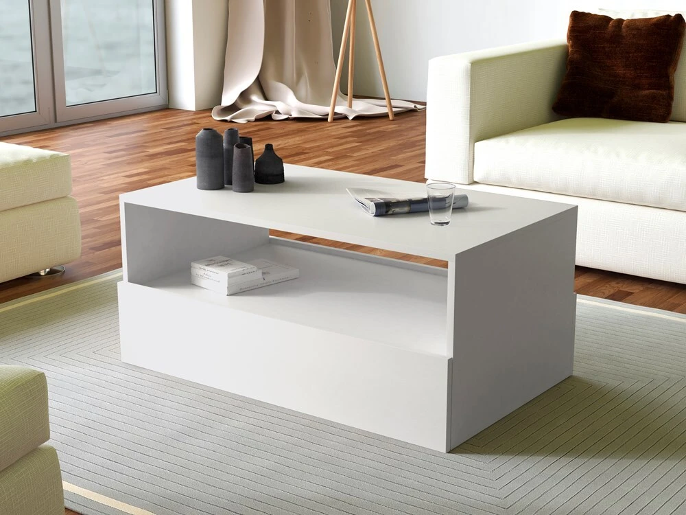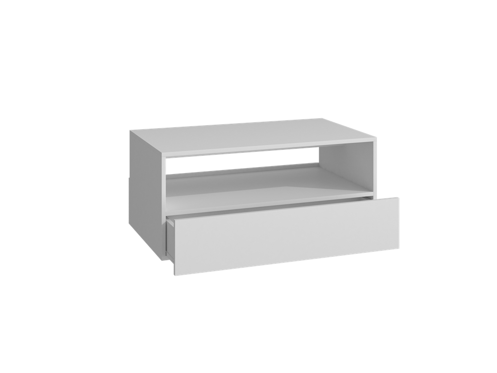 modernus 2-jų stalčių staliukas;apačioje erdvi lentyna Jūsų norimiems daiktams pasidėti;pagamintas iš 16 mm storio laminuotos medžio drožlių plokštės (MDP);Briaunos dengtos PVC danga, pasižyminčia dideliu mechaniniu ir cheminiu atsparumu;išmatavimai: plotis - 54 cm, ilgis - 90 cm, aukštis - 40 cm;spalva: balta;matinis paviršius;