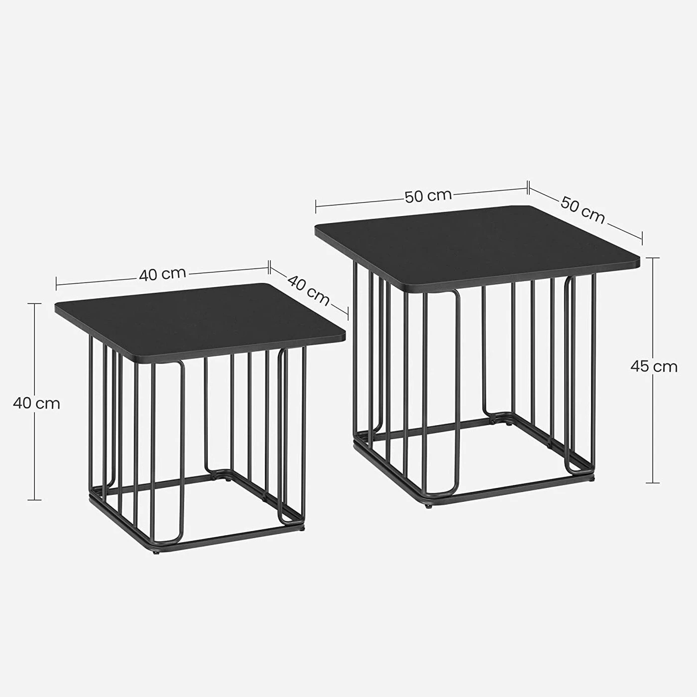 Aprašymas buvo automatiškai išverstas, gali pasitaikyti klaidų. Išsami informacija apie gaminį: - Spalva: juoda - Medžiaga: medžio drožlių plokštė, plienas - Didelio stalo dydis: 50 x 50 x 45 cm (I x P x A) - Mažo stalo dydis: 40 x 40 x 40 cm (P x P x A) - Bendras svoris: 8,3 kg - Maksimali vieno stalo statinė apkrova: 30 kgPristatymo komplektas:- 2 x kavos staliukas- 2 x priedų paketas- 1 x vadovasVASAGLE Pastabos:- Saugumo sumetimais vaikams draudžiama lipti ant gaminio ar žaisti su juo.
