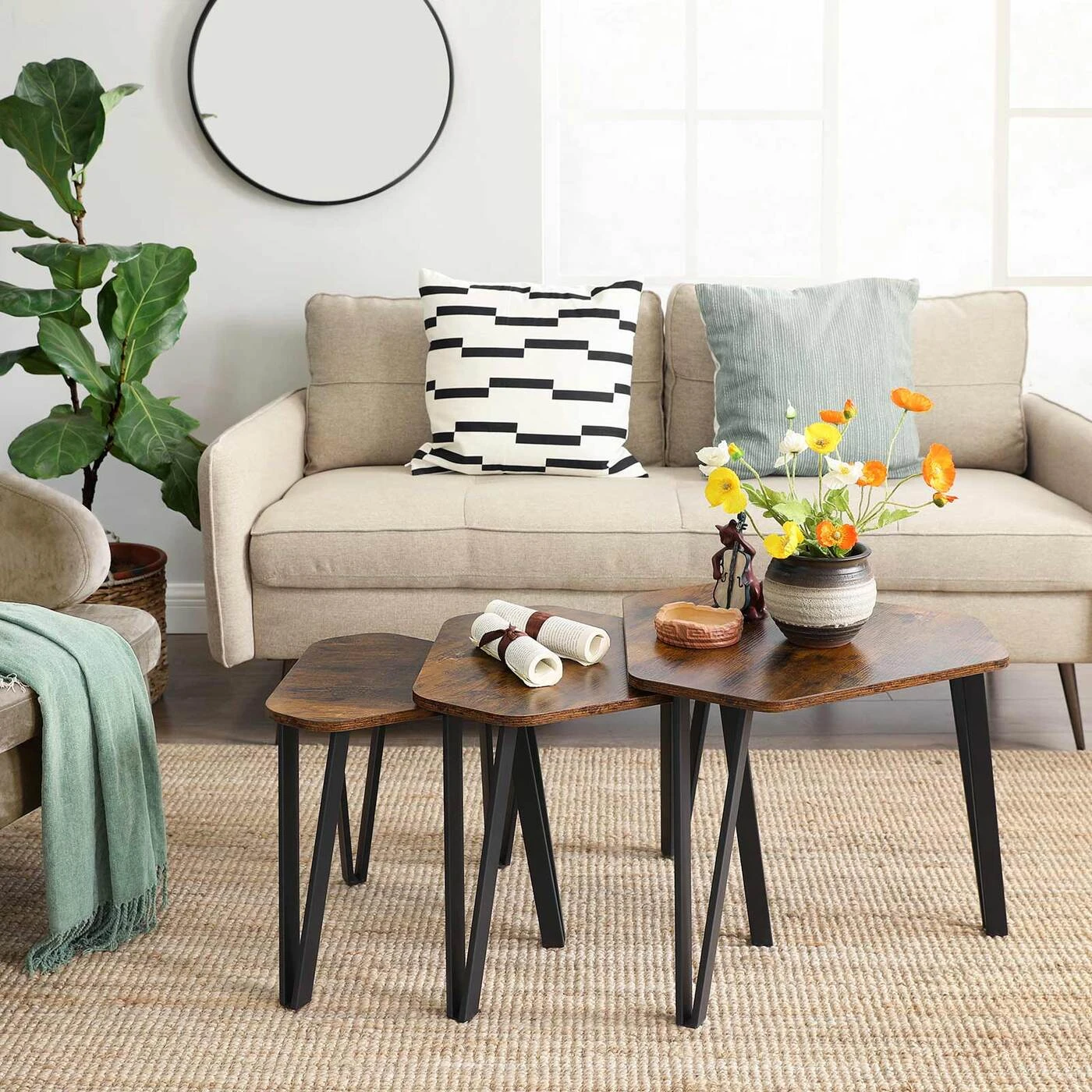 Aprašymas buvo automatiškai išverstas, gali pasitaikyti klaidų.Išsami informacija apie gaminį: - Spalva: vintažinė ruda-juoda - Medžiaga: medžio drožlių plokštės, plienas - Didelio stalo dydis: 58,7 x 51,9 x 45,5 cm (P x P x A) - Vidurinio stalo dydis: 51,2 x 45,9 x 43 cm (P x P) x A) - mažas stalo dydis: 39,6 x 35,9 x 40 cm ;(PxWxH) - Bendras komplekto svoris: 9,9 kg - Maksimali statinė vieno stalo apkrova: 20 kgPristatymo komplektas: - 3 x šoninis staliukas (mažas, vidutinis, didelis) - 1 x priedų krepšys - 1 x rankinis (EN, DE, FR, ES, IT) VASAGLE Pastabos: - Saugumo sumetimais vaikams draudžiama lipti arba naudokite gaminį žaisti.