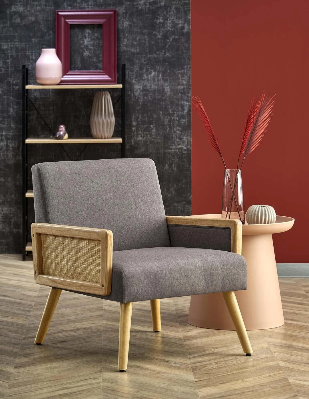 matmenys: wymiary: 63/68/73/41 cm, medžiaga: audinys / sintetinis rotangas / medžio masyvas, spalva: pilka