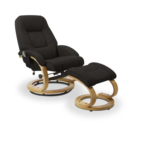 atlošas su masažo ir šildymo funkcija, matmenys: kėdė - 71/76/103 cm, kėdutė kojoms - 49/47/41 cm, medžiaga: išlenktas medis / eko oda, spalva: smėlio spalvos