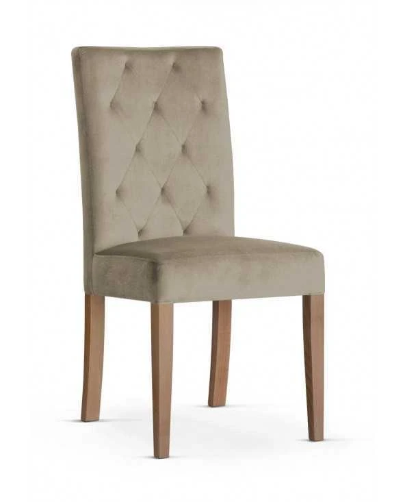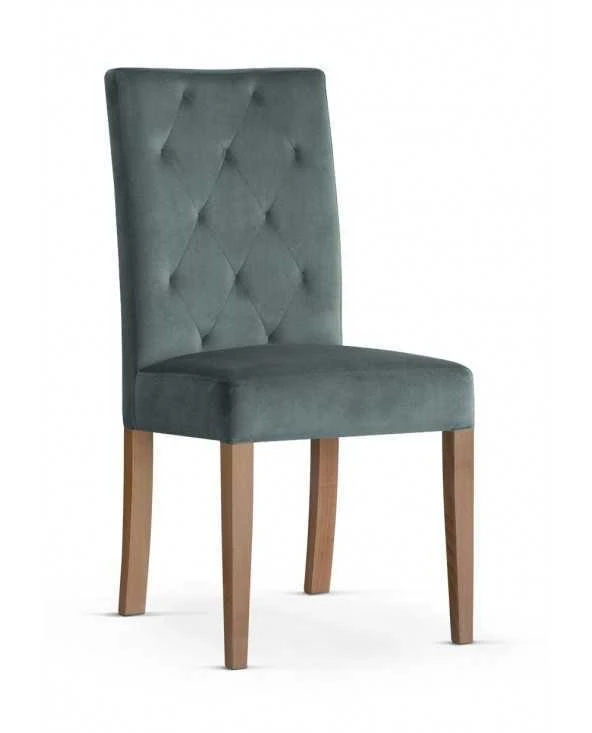 Stilinga minkšta kėdė, pagaminta iš tvirtos medinės konstrukcijos. Apmušta aksominio tipo audiniu su dygsniuotu atlošu. Visa tai užtikrina aukštą naudojimo patogumą ir atrodo gražiai.