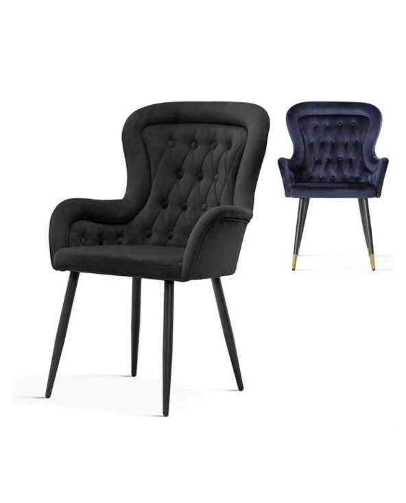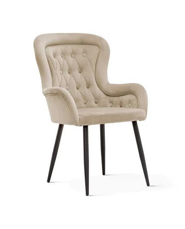 Minkšta PARIS kėdė su juodomis metalinėmis kojomis.