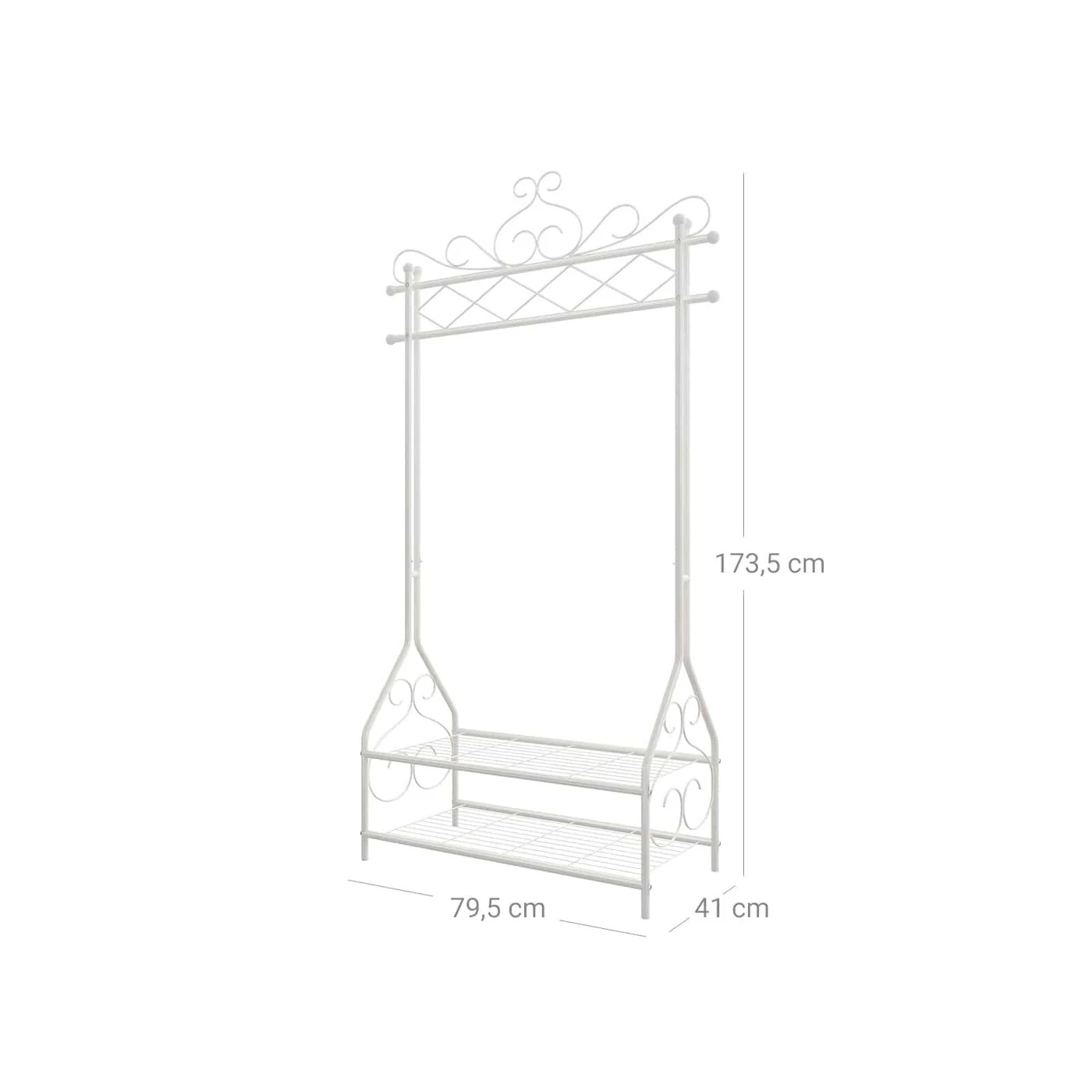 Aprašymas buvo automatiškai išverstas, gali pasitaikyti klaidų.Ar jūsų švarkai ir paltai paprastai netvarkingai kaupiasi jūsų spintoje? Ar jūsų batai vis dar skraido koridoriuje? Čia ateina sprendimas! Vintažinio stiliaus estetika Lenktų ornamentų ir metalinio vamzdžio sąveika būdinga vintažiniam stiliui, originalaus dizaino drabužių kabykla įneš nostalgijos į prieškambarį, rūbinę, miegamąjį ir kt. Puikus funkcionalumas Viršutinėje drabužių kabykloje ir apatinėse lentynose yra pakankamai vietos drabužiams, skrybėlėms, rankinėms ir batams, o kabykla įneša tvarką jūsų namuose. Puikiai tinka sutvarkyti asmeninį garderobą ar prekėms eksponuoti parduotuvėje. Optimaliai funkcionalumą ir estetiką derinanti drabužių kabykla SONGMICS yra nepamainoma tvarkingiems namams.Informacija apie gaminį: - Spalva: smėlio spalvos - Medžiaga: milteliniu būdu dengtas geležinis vamzdis - Bendri matmenys: 92 x 173 x 41 cm (P x A x G) - Kiekvienos lentynos matmenys: 76 x 40 cm - Svoris: 5,6 kg - Maks. apkrova - drabužių kabykla: 25 kg - Kiekviena lentyna: 10 kg Pristatymo apimtis: - 1 x drabužių kabykla - 1 x instrukcijos (DE, EN, FR, IT, ES)