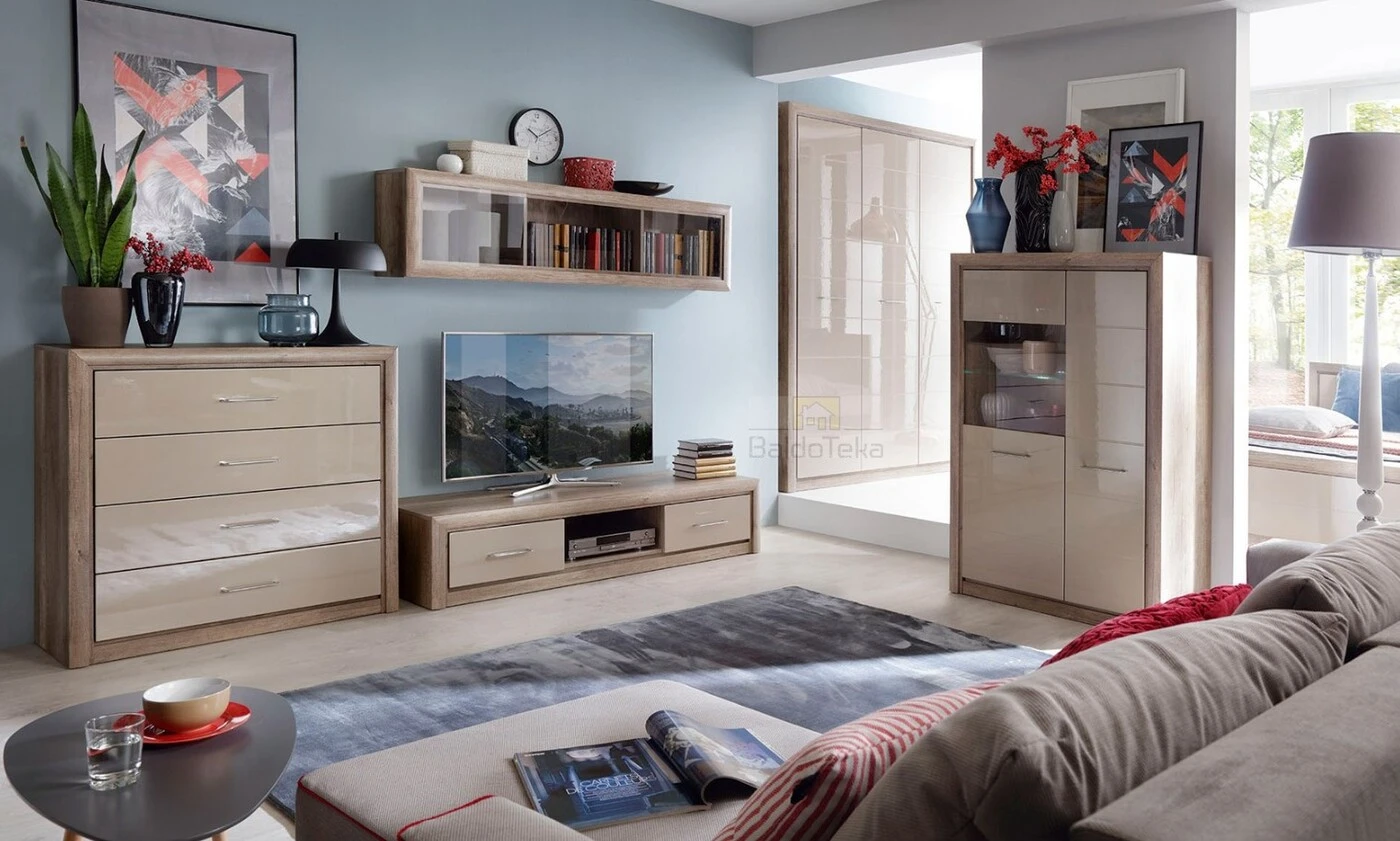Spalva – ąžuolas Monument + pilka/smėlio blizgi.Visi KOEN 2 baldai >>>