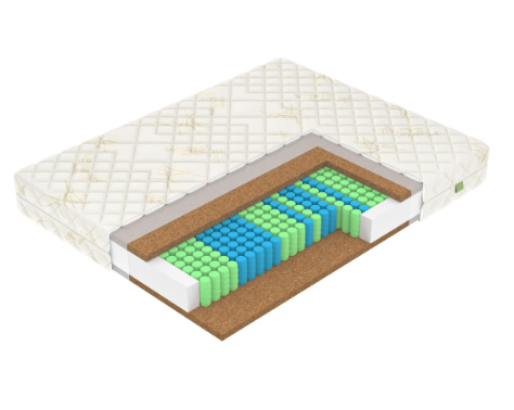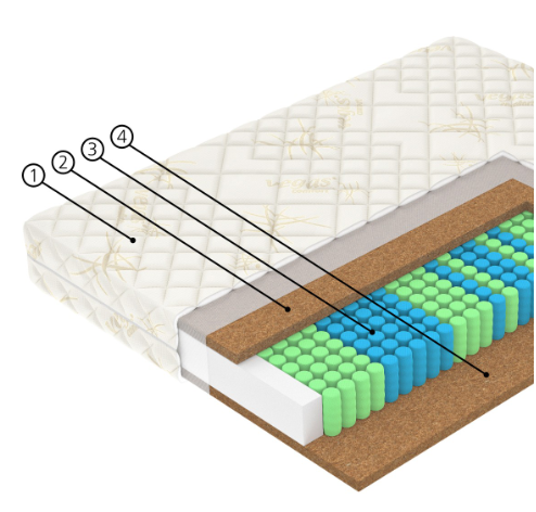 2. Kokoso pluoštas – natūrali medžiaga iš presuoto kokoso riešutų pluošto, įmirkyto lateksu. Naudojama siekiant suteikti čiužiniui kietumo.