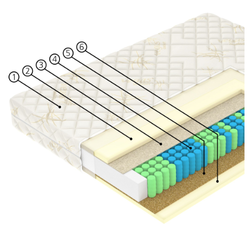 3. Linas – vientisas sluoksnis iš lino pluošto. Prailgina čiužinio tarnavimo laiką, užkirsdamas kelią aktyviam spyruoklių bloko veikimui į minkštuosius pakloto sluoksnius.