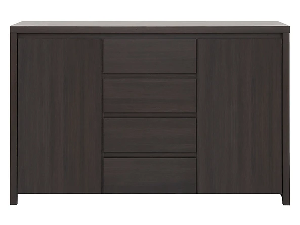 Modernaus dizaino komoda iš kolekcijos su talpiais stalčiais ir lentynomis.