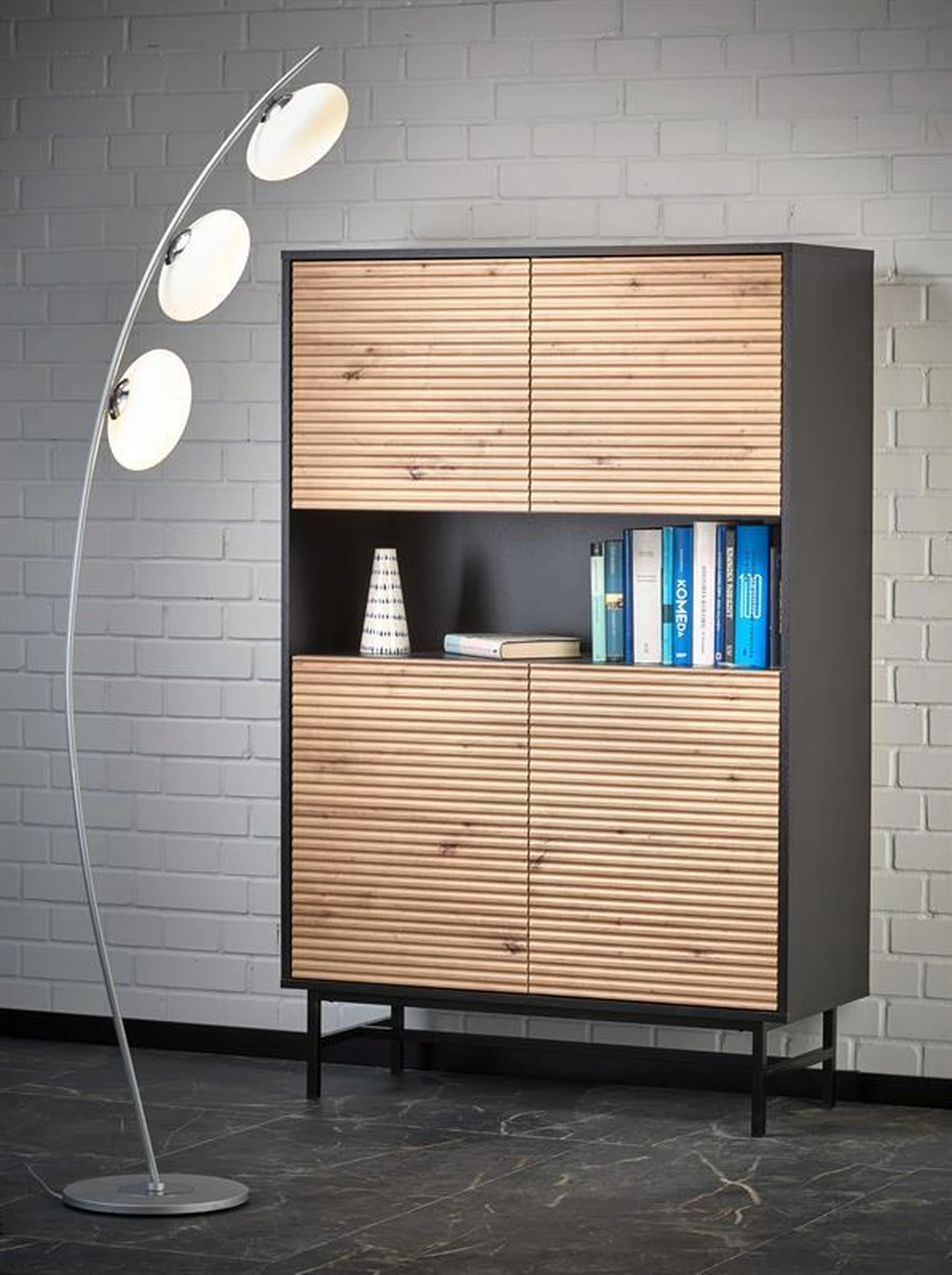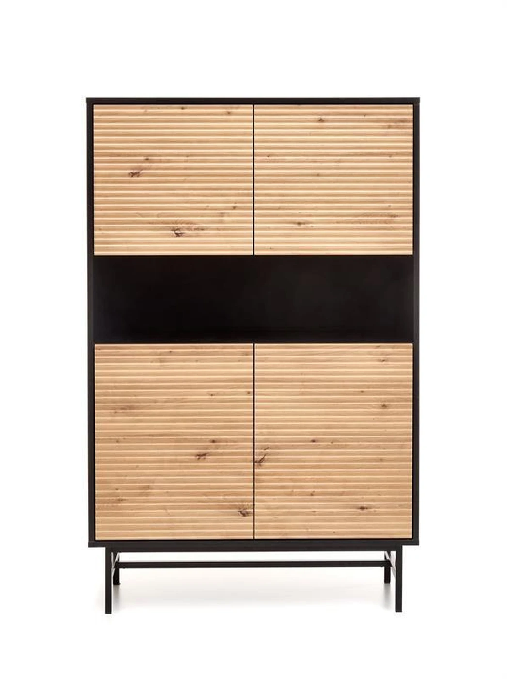 komoda, matmenys: 100/40/156 cm, medžiaga: laminuota MDF / laminuota medžio drožlių plokštė / milteliniu būdu dažytas plienas, spalva: amatinis ąžuolas / juoda