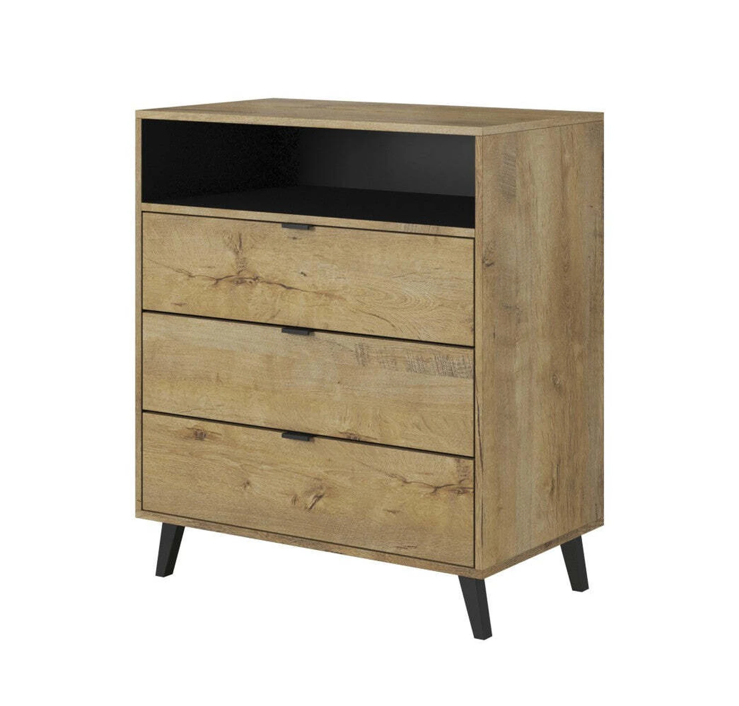 komoda, matmenys: 80/45/80 cm, medžiaga: laminuota medžio drožlių plokštė / polipropilenas, spalva: lefkas ąžuolas / juoda