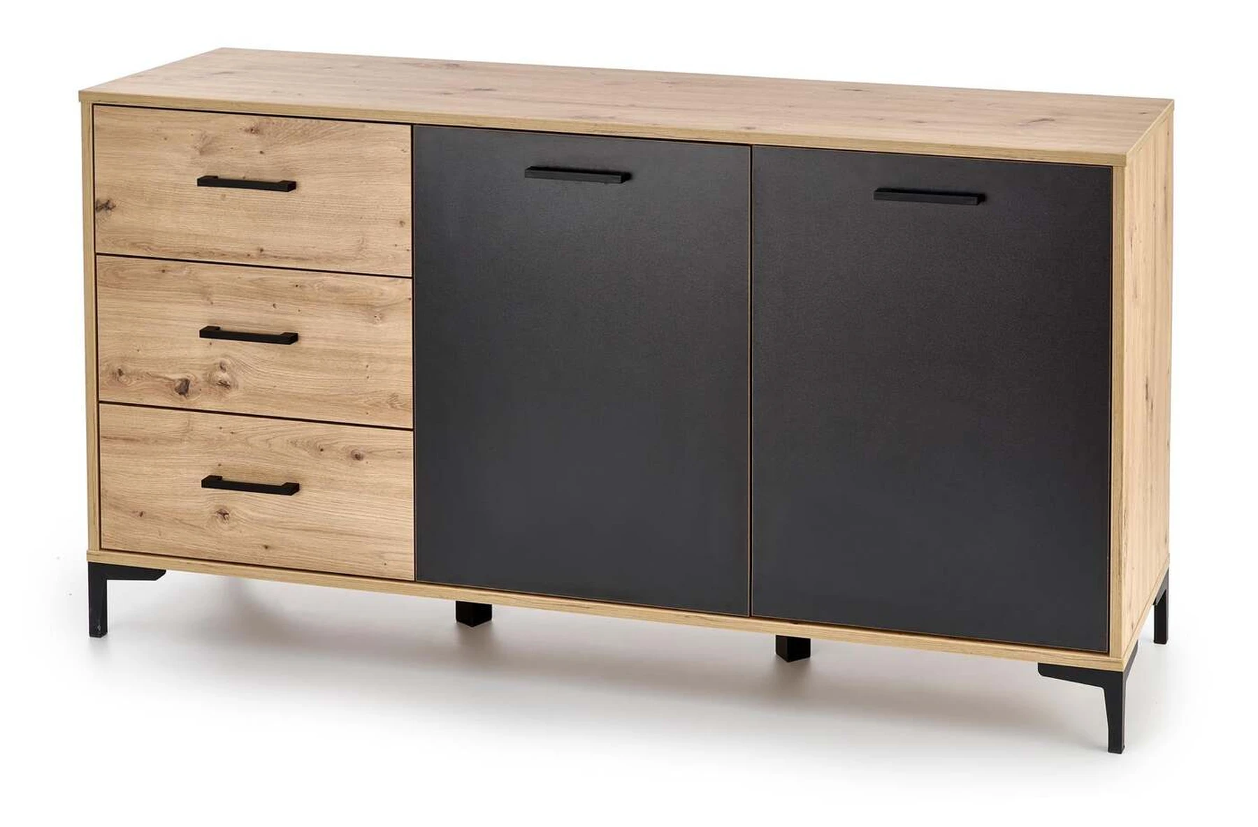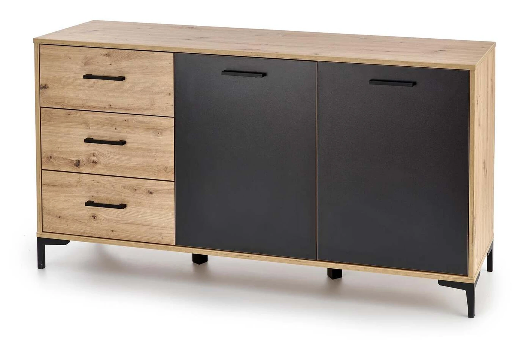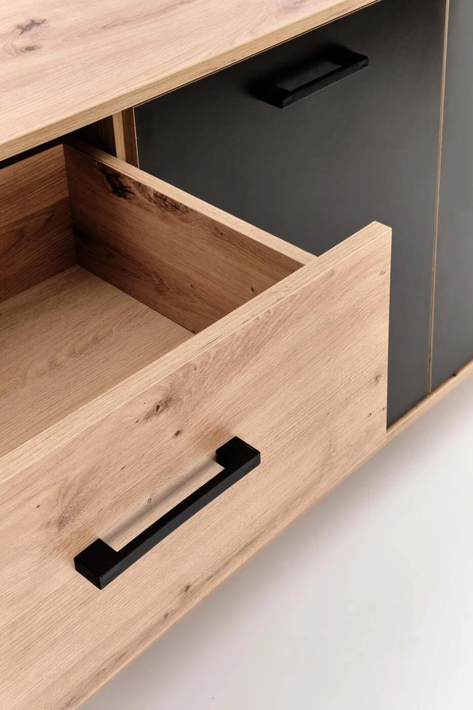 komoda, matmenys: 160/40/85 cm, medžiaga: laminuota medžio drožlių plokštė / ABS briaunos / polipropilenas, spalva: amatinis ąžuolas / juoda