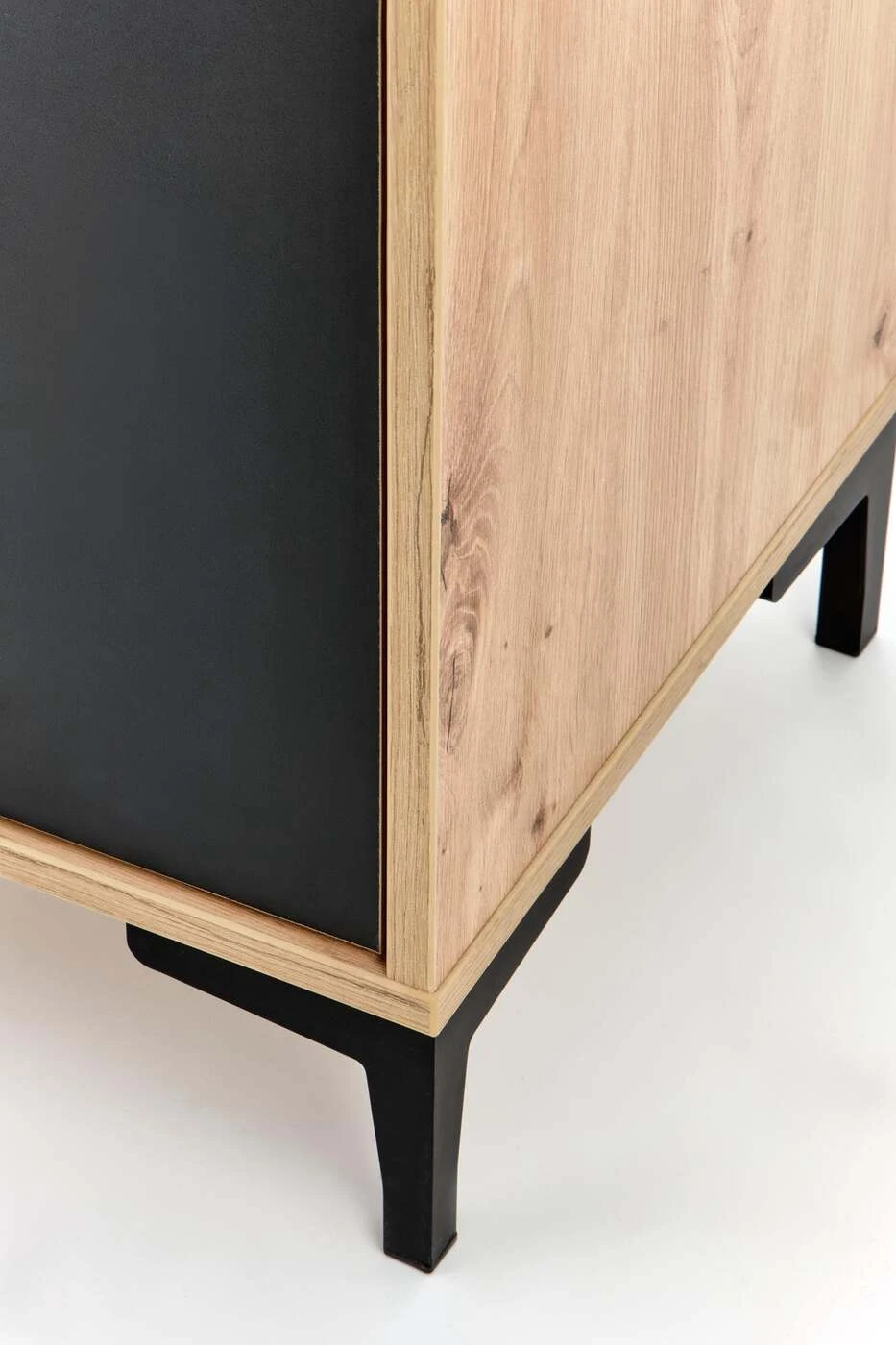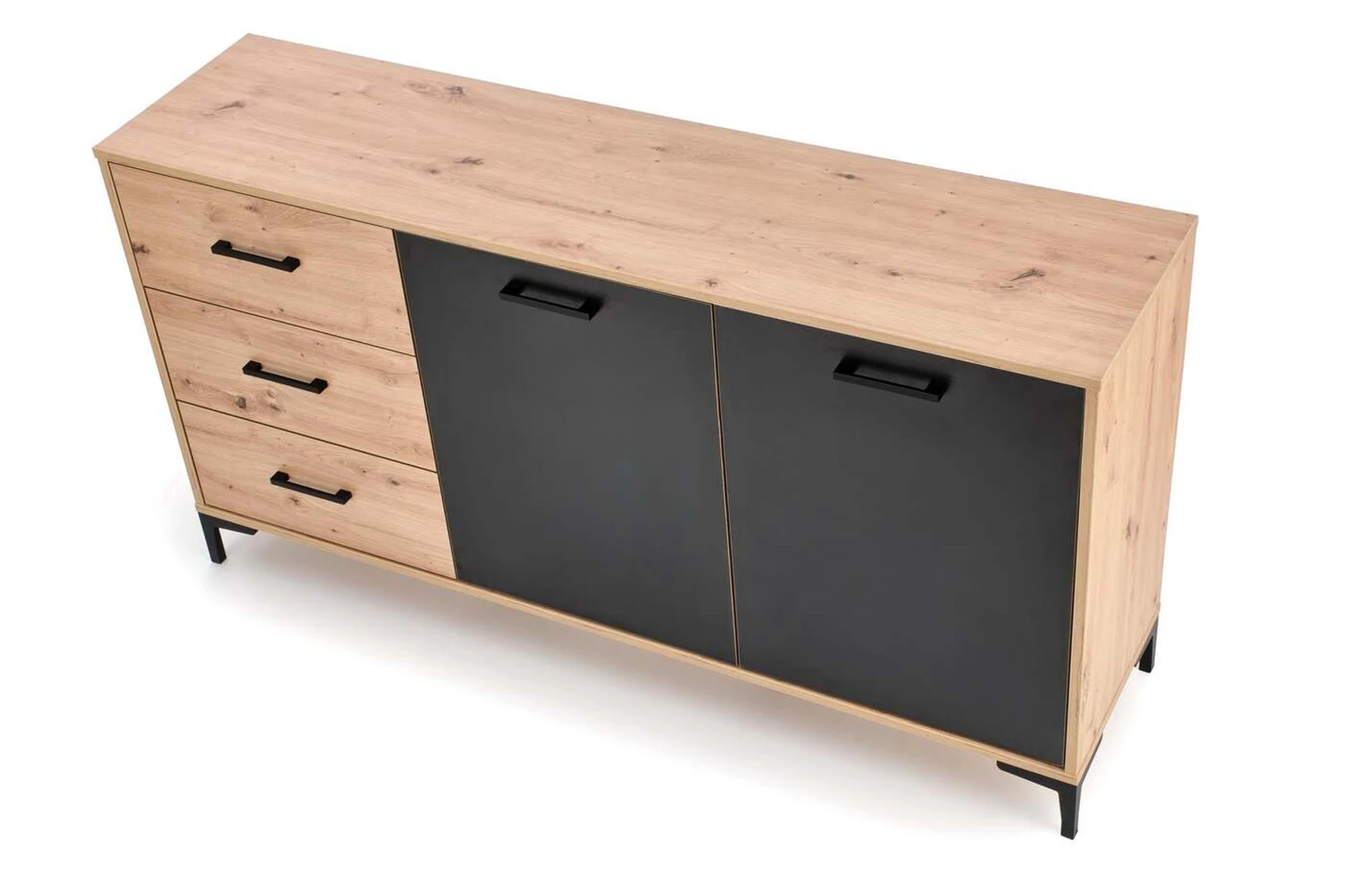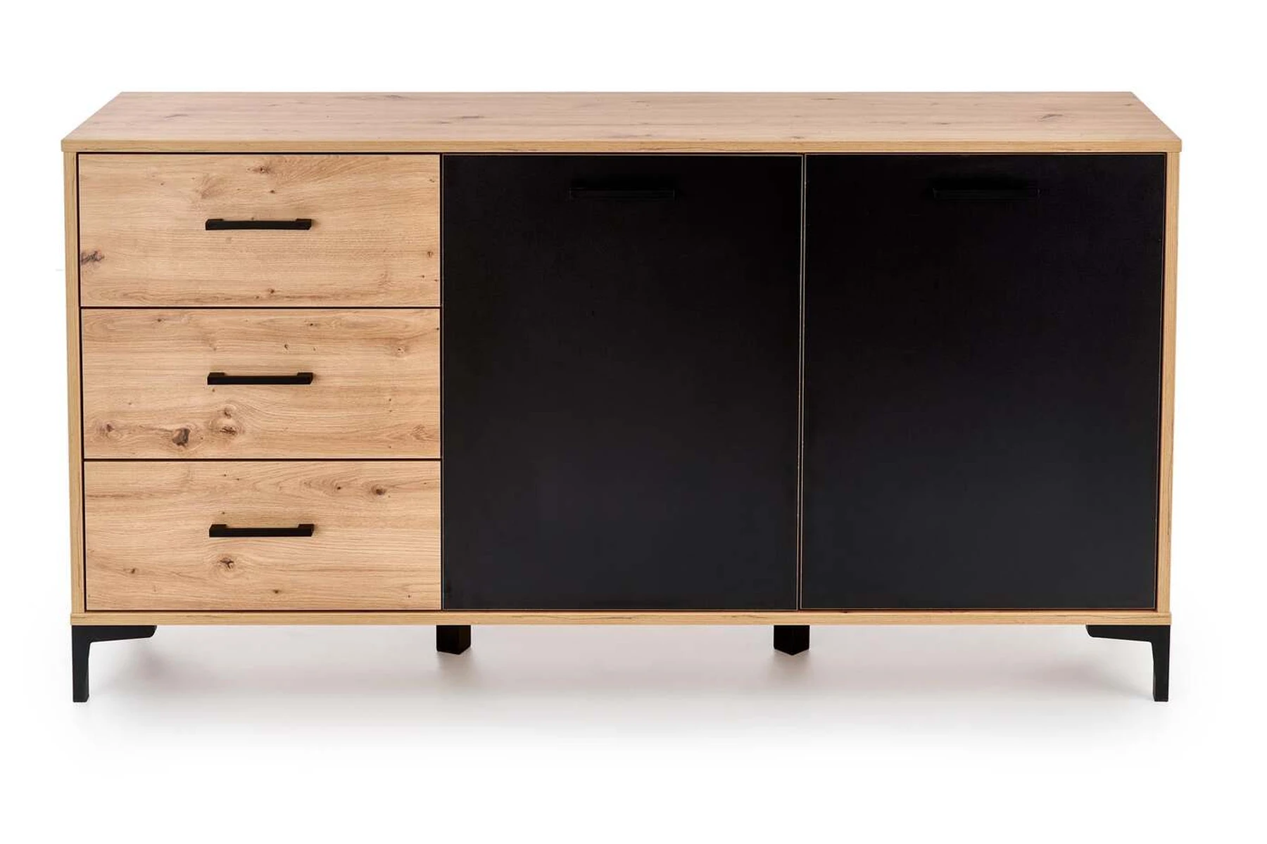 komoda, matmenys: 160/40/85 cm, medžiaga: laminuota medžio drožlių plokštė / ABS briaunos / polipropilenas, spalva: amatinis ąžuolas / juoda