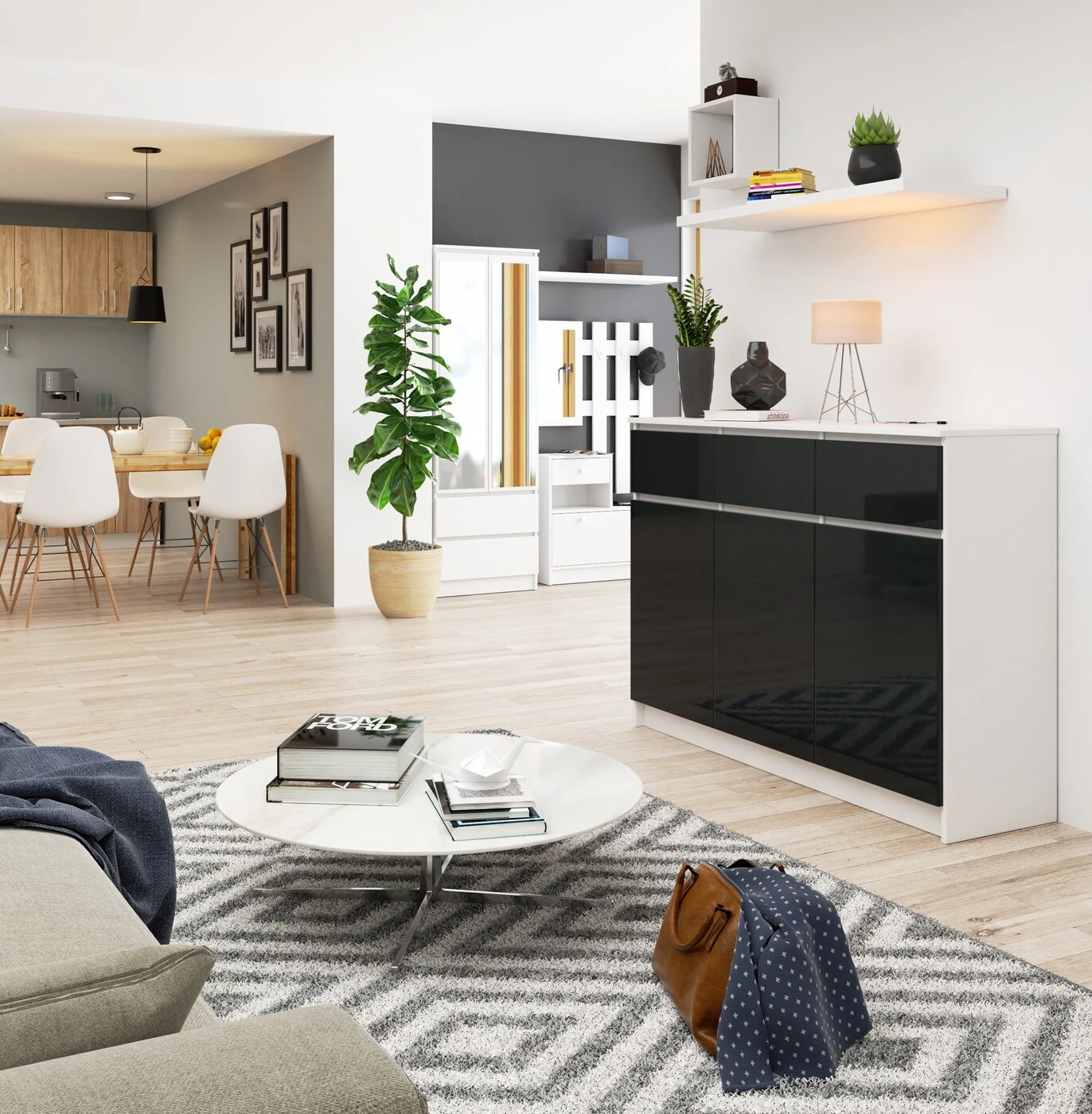 Aprašymas buvo automatiškai išverstas, gali pasitaikyti klaidų.Komoda iš aukštos kokybės 16 mm laminuotos plokštės, atsparios dilimui. Kompaktinį diską pateikia gamintojas Kronospan Stalčių fasadai pagaminti iš laminuotos plokštės Stalčiai veikia ant metalinių slydimo ritinėlių Kraštai padengti ABS apvadu, kad būtų gerai apsaugoti nuo pažeidimų Kiekvieno viduje durys yra viena lentyna Savarankiškai surenkama komoda Instrukcijos pridedamos 24 mėnesių garantija