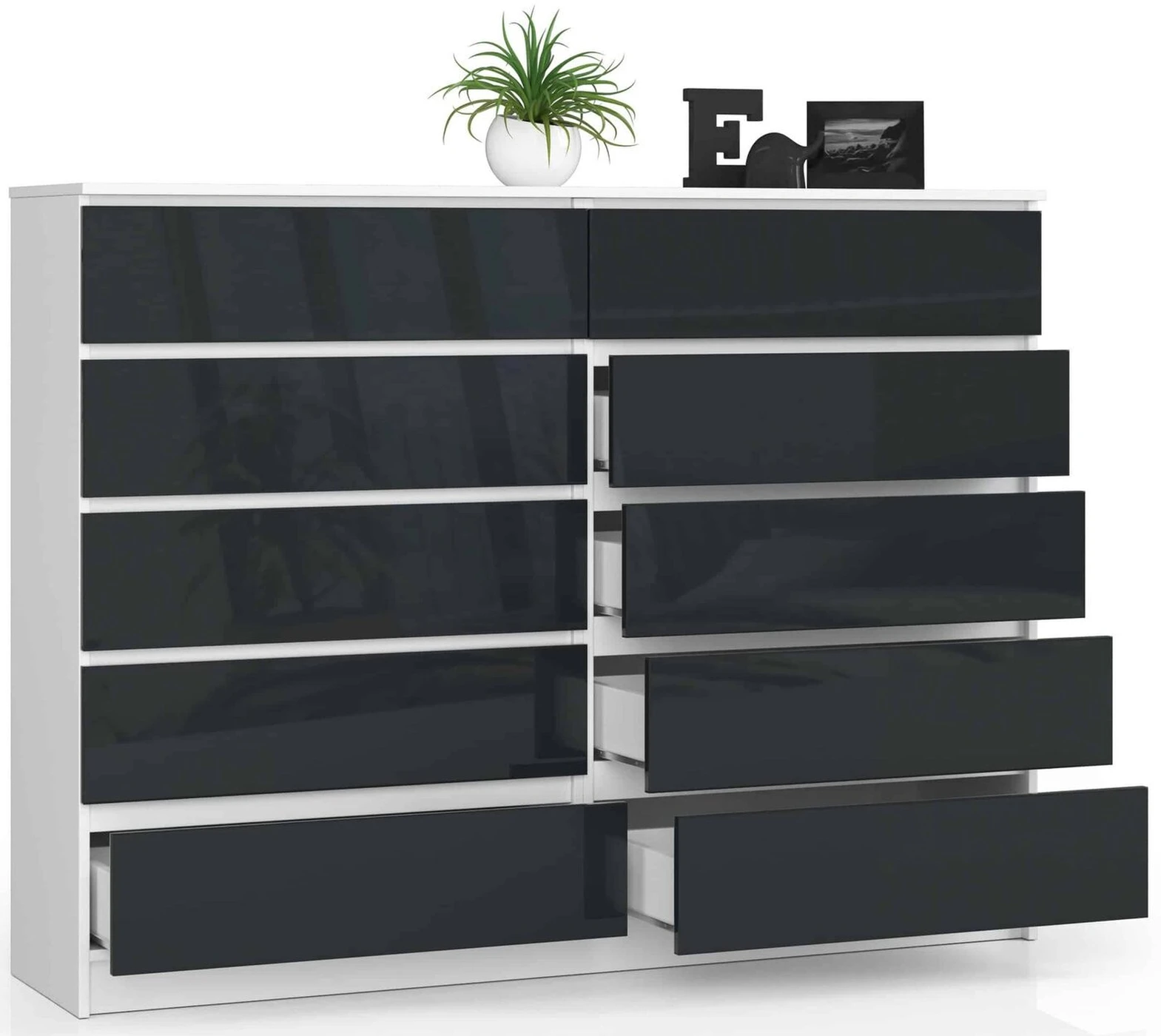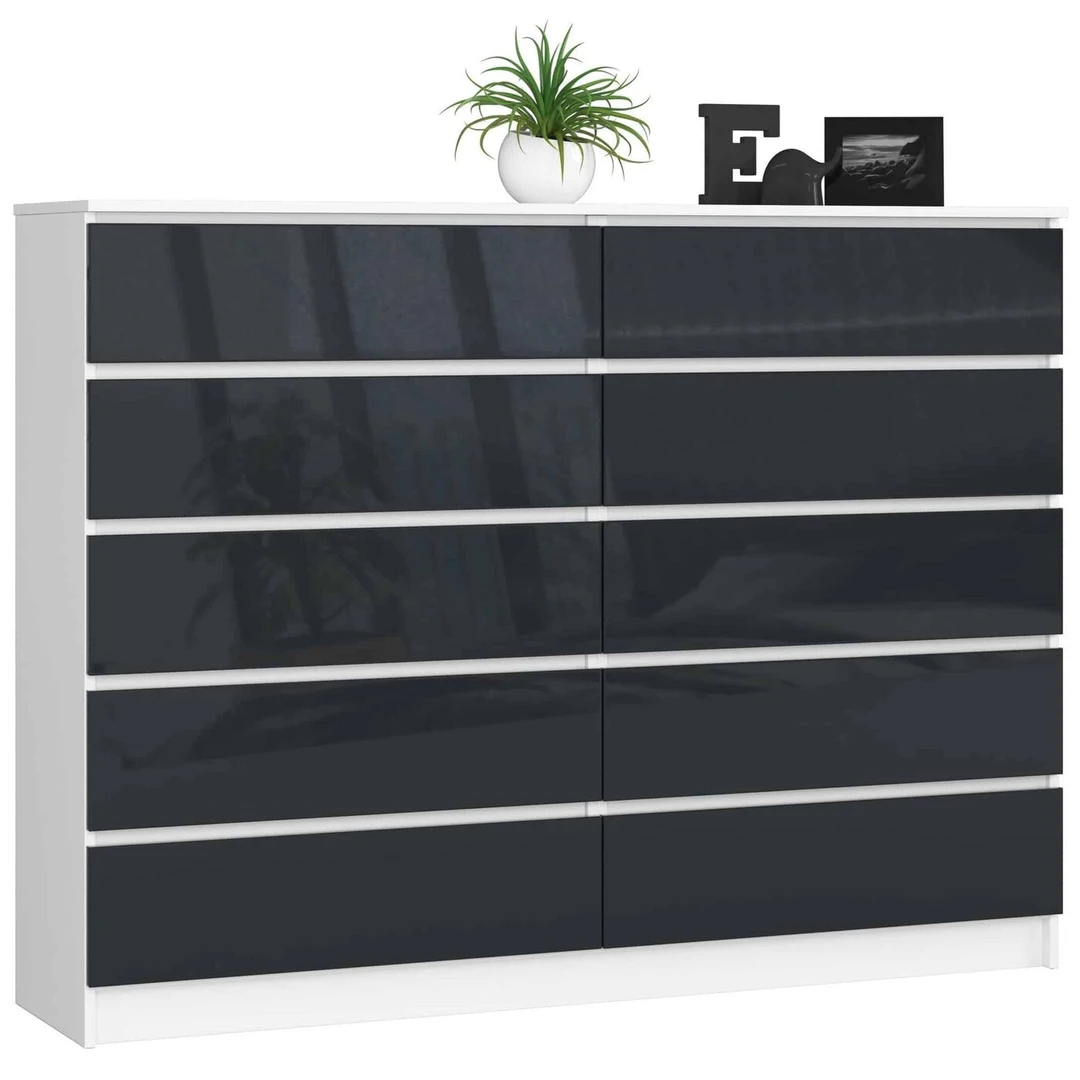 Aprašymas buvo automatiškai išverstas, gali pasitaikyti klaidų. - Komodos korpusas pagamintas iš laminuotos plokštės balto kilimėlio 16mm atsparus trinčiai - Fasadai pagaminti iš MDF grafito blizgesio - Stalčiai juda ant metalinio volelio kreiptuvai - Kraštai padengti ABS briauna, kad būtų užtikrinta aukšta apsauga nuo pažeidimų - Savarankiškai surenkama komoda - Pridedamos instrukcijos – 24 mėnesių garantija