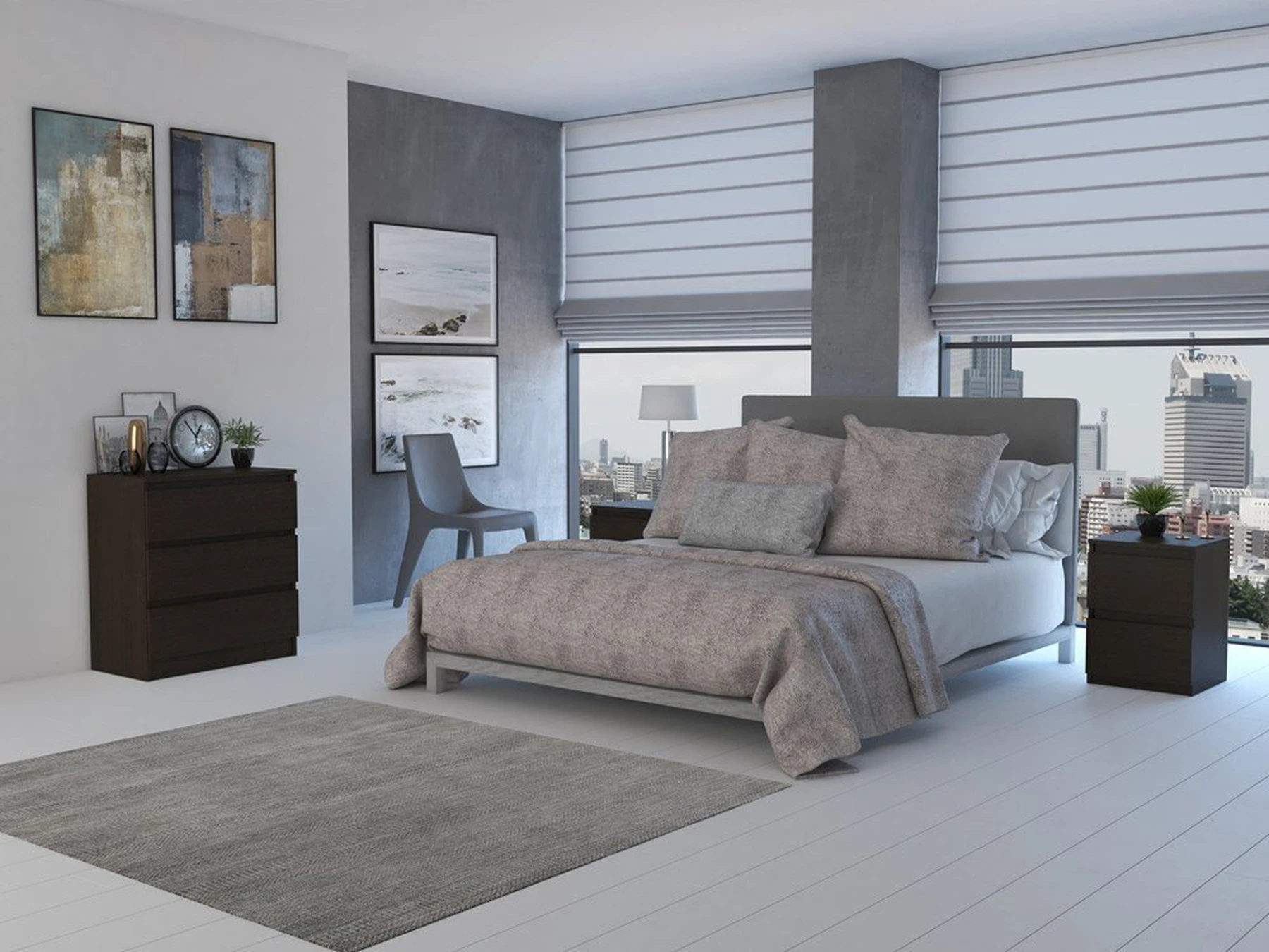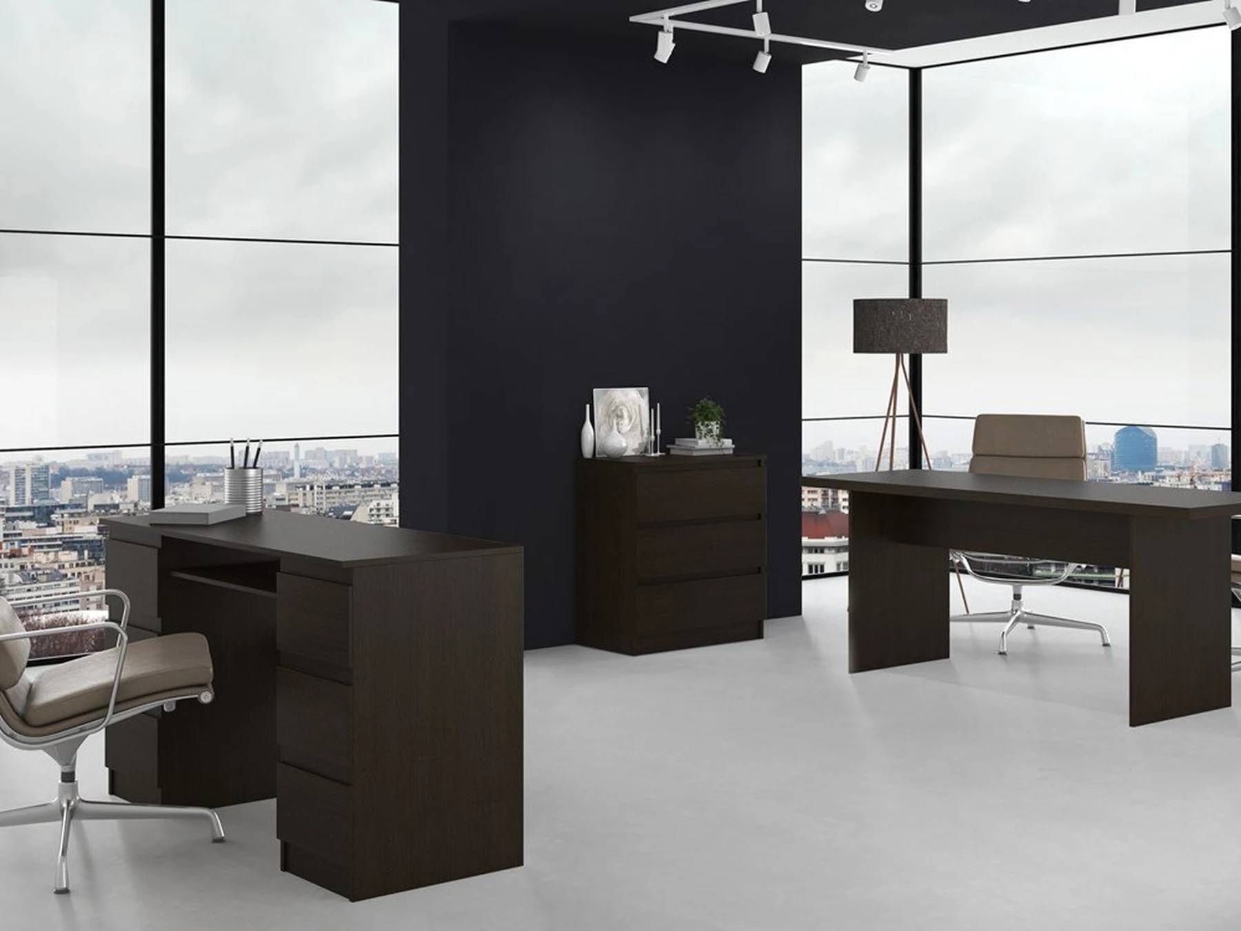 trijų stalčių komoda;komoda pagaminta iš laminuotos medžio drožlių plokštės (MDP);komodos kraštų apdaila - PVC, pasižymintis dideliu mechaniniu bei cheminiu atsparumu;talpi ir praktiška;komodos išmatavimai: aukštis - 77 cm, plotis - 70 cm, gylis - 40 cm;spalva - tamsiai ruda (wenge);Stalčių bėgeliai - ritininiai;