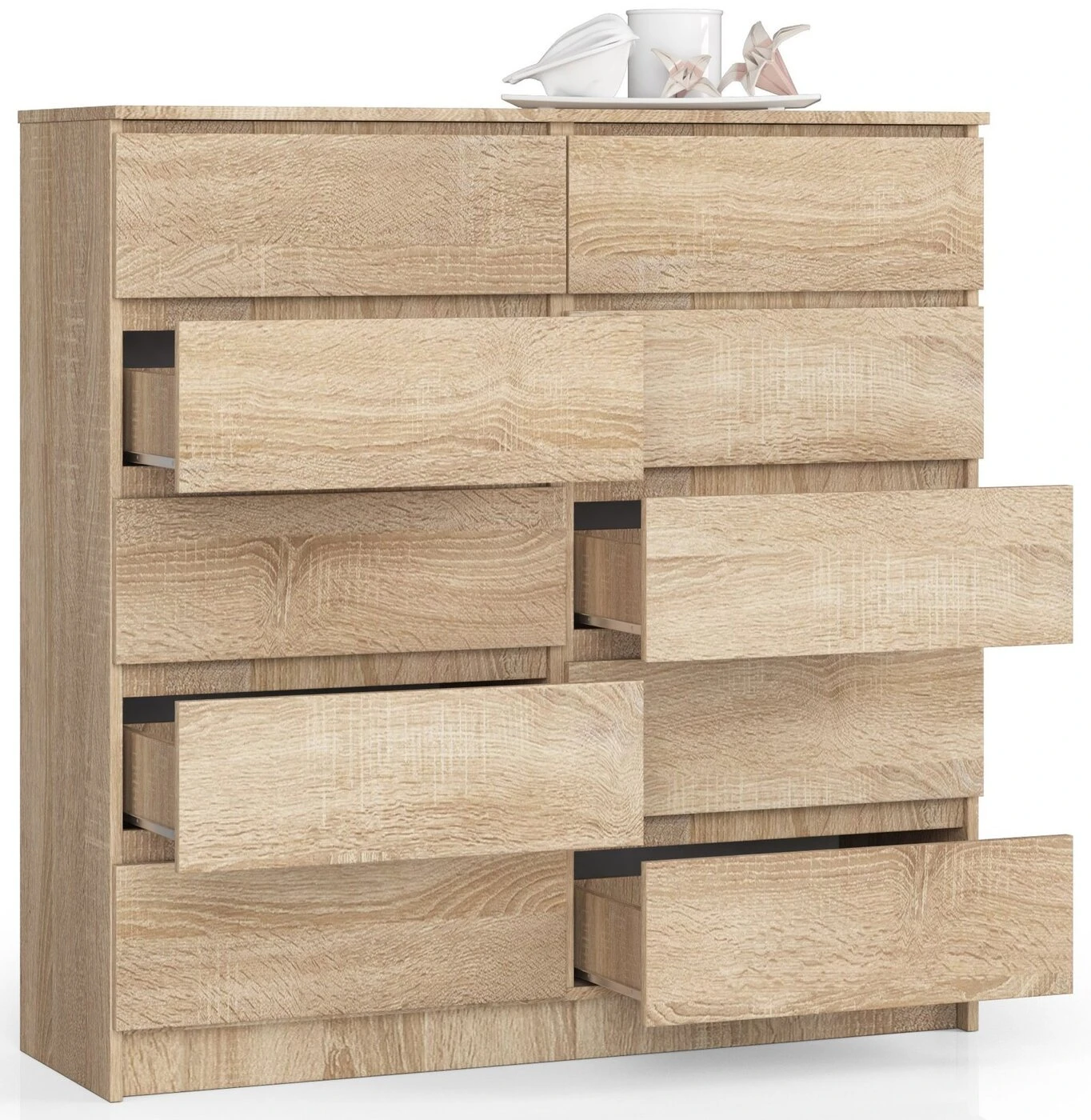 Aprašymas buvo automatiškai išverstas, gali pasitaikyti klaidų. Minimalistinė universalaus ir nesenstančio Sonomos ąžuolo atspalvio komoda sutalpins visus kasdienius daiktus, kurių nebūtinai norėsime demonstruoti. Jis papildys svetainę, namų biurą ir net prieškambarį, dėl savo šviesios spalvos optiškai padidina tamsius kambarius, suteikdamas jiems žavesio ir stiliaus. Dešimt erdvių stalčiai yra puiki vieta dokumentams, dėžėms su smulkmenomis ar drabužiais laikyti. Tai palengvina jūsų namų tvarką nei bet kada! Sklandų stalčių išplėtimą ir įtraukimą užtikrina metaliniai ritininiai kreiptuvai, todėl niekas neužstringa, stalčiaus judėjimas sklandus ir tylus. Komoda pagaminta iš aukštos kokybės laminuotos plokštės, pasižyminčios dideliu atsparumu dilimui, kad būtų išvengta kasdieninio naudojimo metu galinčių atsirasti įbrėžimų ir įbrėžimų ant baldo paviršiaus, o kraštai papildomai padengti ABS briauna, kuri garantuoja ypatingą apsaugą nuo pažeidimų. Smėlio spalvos, akį džiuginanti Sonomos ąžuolo spalva puikiai derės prie modernaus, minimalistinio interjero stiliaus, tiks ir jaukiame skandinaviškame stiliuje ar pagal paauglio skonį įrengtas jaunimo kambarys. Taigi tai gana universalus baldas ir lengvai pritaikomas skirtingose patalpose. Pridedamame pareiškime pateikiamos aiškios ir išsamios instrukcijos, leidžiančios efektyviai savarankiškai surinkti baldus, kurių dėka kiekvienas galės juos surinkti, neįtraukdamas profesionalų komandos. Be to, komodai taikoma 24 mėnesių garantija. - Komoda iš trinčiai atsparios laminuotos plokštės - Stalčių fasadai pagaminta iš laminuotos plokštės - Stalčiai juda ant metalinių ritinėlių kreiptuvų - Kraštai padengti ABS briauna, užtikrinančia aukštą apsaugą nuo pažeidimų - Savarankiškai surenkama komoda - Instrukcija įtraukta - 24 mėnesių garantija