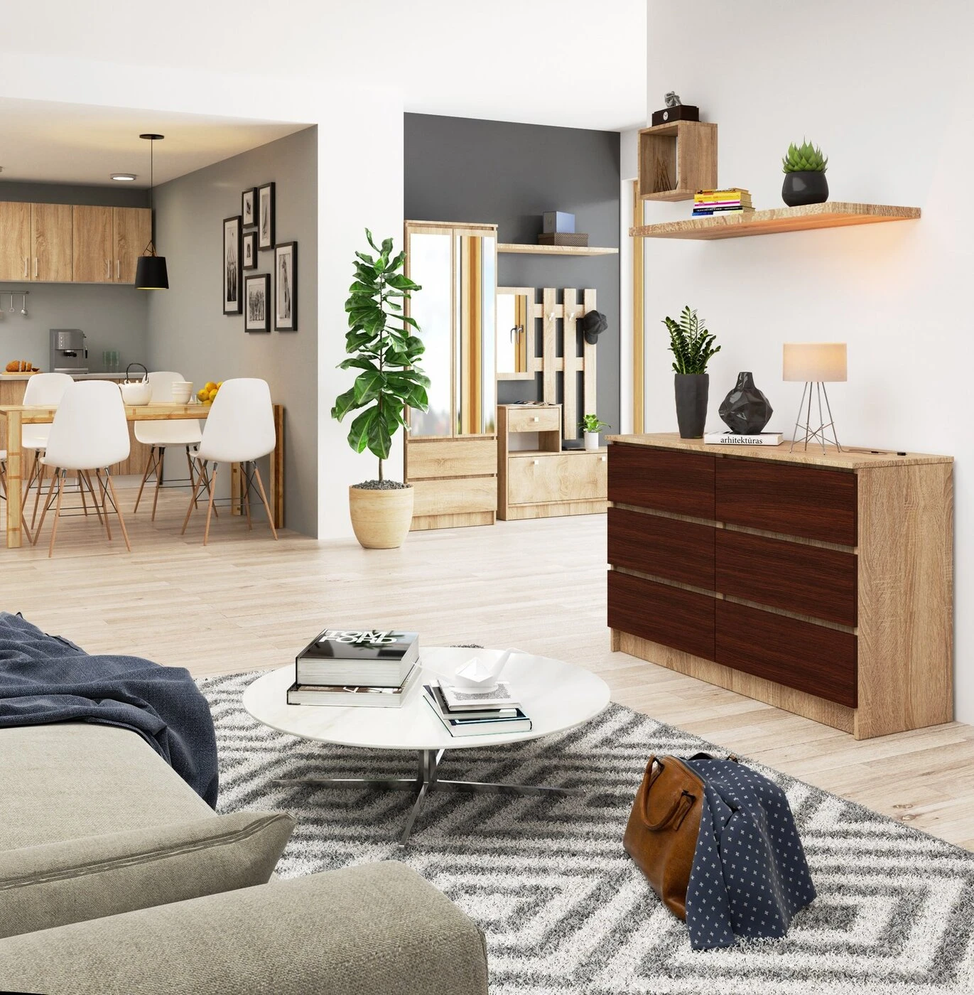 Aprašymas buvo automatiškai išverstas, gali pasitaikyti klaidų. - Komoda iš dilimui atsparios laminuotos plokštės - Stalčių fasadai pagaminti iš laminuotos plokštės - Stalčiai yra ant metalinių ritinėlių kreipiančiųjų - Kraštai padengti ABS briauna, užtikrinančia aukštą apsaugą nuo pažeidimų - Savarankiškai surenkama komoda - Pristatymo vadovas - Garantija 24 mėn.