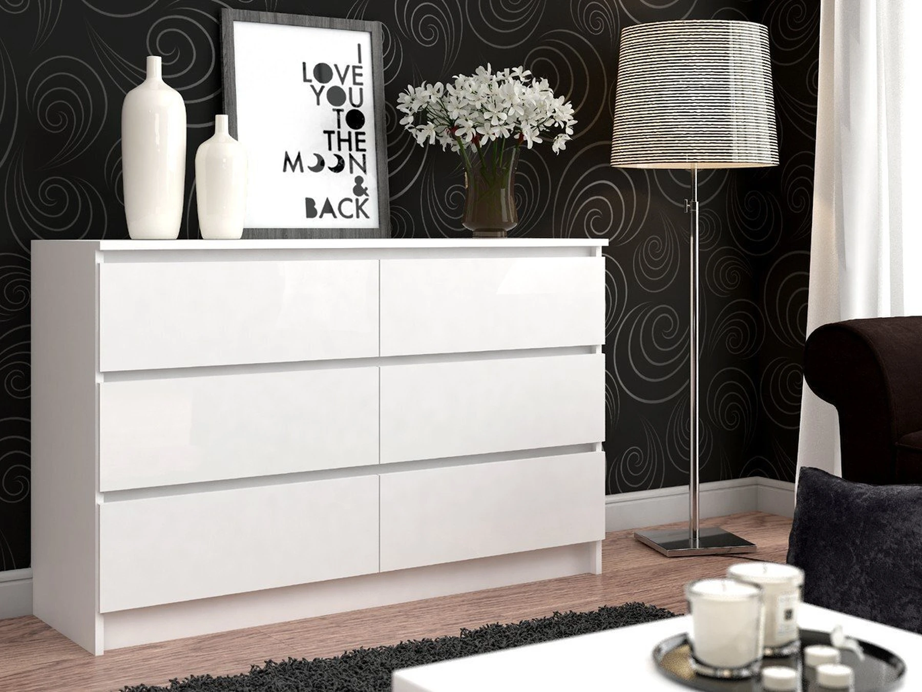 Aprašymas buvo automatiškai išverstas, gali pasitaikyti klaidų. - Komoda iš dilimui atsparios laminuotos plokštės - Stalčių fasadai pagaminti iš laminuotos plokštės - Stalčiai eina ant metalinių ritinėlių - Kraštai padengti ABS briauna, užtikrinančia aukštą apsaugą nuo pažeidimų - Savarankiškai surenkama komoda - Pristatymo vadovas - Garantija 24 mėn. bendras dėmesys gaminių funkcionalumui ir aukštai estetinei vertei. Puikus to pavyzdys – 120 cm komoda. Šis praktiškas baldas pagamintas iš trinčiai atsparios laminuotos plokštės, kuri garantuoja jo ilgaamžiškumą ir tvirtumą. Net šešiuose erdviuose stalčiuose nesunkiai tilps įvairios knygos, dokumentai ir smulkmenos. Kai kurie mūsų klientai renkasi joje laikyti drabužius ir net patalynę. Balta komoda yra elegantiško dizaino. Paprasta forma ir elegantiška apdaila tinka tiek prie klasikinių, tiek prie elegantiškų interjero, tiek prie romantiškų. Šis unikalus baldas puikiai atrodo stilingoje svetainėje ir jaukiame miegamajame. Jis taip pat naudojamas kaip drabužių ar prieškambario elementas. Komoda su 6 stalčiais yra vertinama individualių klientų ir verslininkų. Dėl savo nepriekaištingos išvaizdos ir nepaprastų talpų jis puikiai tinka kaip biuro įranga.