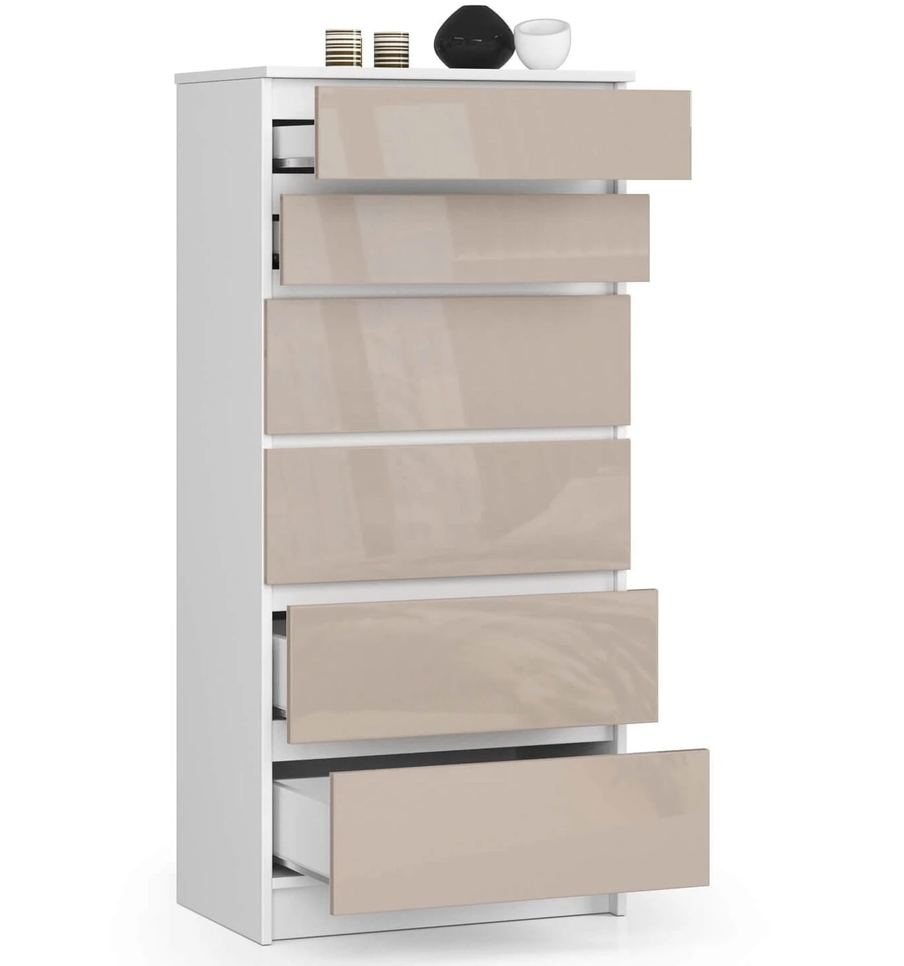 Aprašymas buvo automatiškai išverstas, gali pasitaikyti klaidų. - Komoda pagaminta iš trinčiai atsparios laminuotos plokštės - Fasadai iš 19mm MDF ACRYLIC CAPPUCCINO GLOSS - Stalčiai juda ant metalinių ritinėlių kreiptuvų - Viršus, šonai ir fasadai padengti apvadu ABS - Spintelės funkcionalumą užtikrina dviejų dydžių fasadai - du viršutiniai mažesni, o apatiniai didesni - Savarankiškai surenkama komoda - Pristatoma rankiniu būdu – 24 mėnesių garantija