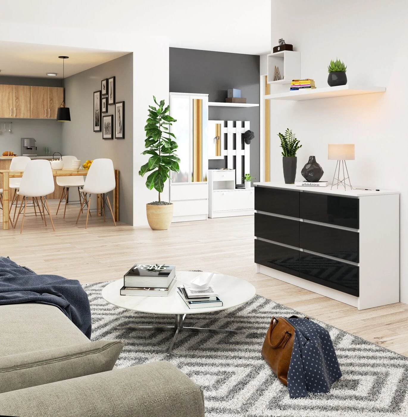 Aprašymas buvo automatiškai išverstas, gali pasitaikyti klaidų. – Komodos korpusas pagamintas iš laminuotos plokštės balto kilimėlio, atsparus dilimui 16 mm - Fasadas pagamintas iš ACRYL 19 mm plokštės su blizgiu grafito dekoru – Stalčiai juda ant metalinių ritinėlių kreiptuvų - Kraštai padengti ABS briauna, užtikrinančia aukštą apsaugą nuo pažeidimų - Savarankiškai surenkama komoda - Pristatyme pateikiamos instrukcijos - 24 mėnesių garantija