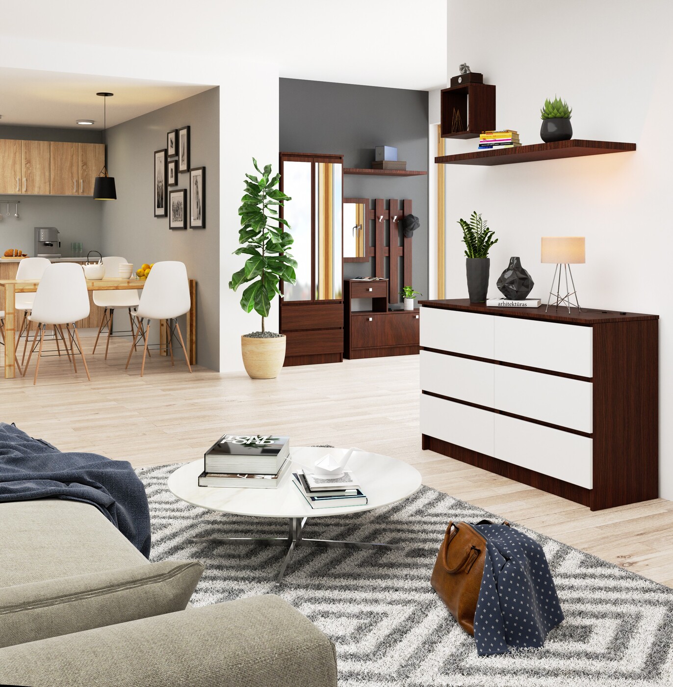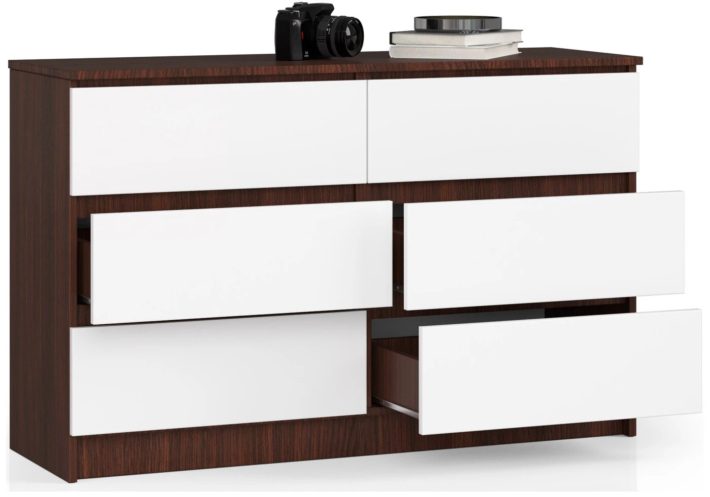 Aprašymas buvo automatiškai išverstas, gali pasitaikyti klaidų. - Komoda pagaminta iš dilimui atsparios laminuotos plokštės - Stalčių fasadai iš laminuotos plokštės - Stalčiai yra ant metalinių ritinėlių kreiptuvų - Kraštai Faneruoti ABS briauna, užtikrinanti aukštą apsaugą nuo pažeidimų - Savarankiškai surenkama komoda - Komplekte instrukcija - Garantija 24 mėn. Tamsaus korpuso, sukurto madingo wenge atspalvio ir balto, klasikinio grožio priekinių dalių derinys, leido sukurti unikalią komodą, kuri yra mūsų pasiūlymo dalis. Baldai susideda iš šešių praktiškų stalčių ir gali būti naudojami tiek svetainėje, tiek daugelyje kitų gyvenamųjų ar biuro patalpų. Mūsų internetinės parduotuvės komodos pasižymi tvirtu laminuotos plokštės apdirbimu, atspariu dilimui. Stalčiai eina ant ritininių metalinių bėgelių, o baldų kraštai apsaugai padengti ABS briauna. Funkcinė komoda skirta montuoti savarankiškai pagal komplekte esančias instrukcijas. Įdomus ir patvarus baldas tikrai pateisins mūsų klientų lūkesčius.