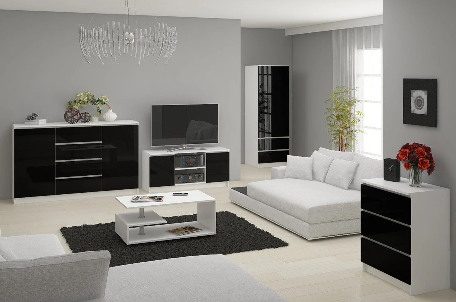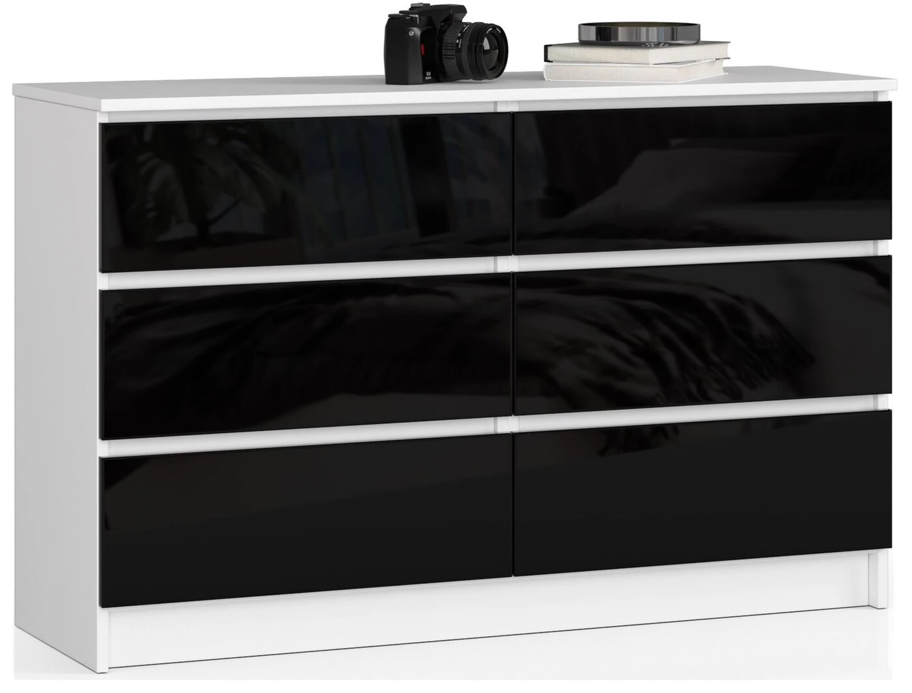 Aprašymas buvo automatiškai išverstas, gali pasitaikyti klaidų. Komoda, modelis K 120 cm, sukelia susidomėjimą iš pirmo žvilgsnio. Nesenstanti elegantiška blizgi juoda spalva kartu su priekinių dalių balta spalva sukuria labai stilistiškai efektingą visumą. Toks derinys atrodo itin elegantiškai ir stilingai. Šis baldas įrodo, kad klasikinė balta ir juoda niekada neišeina iš mados. Akrilinė itin blizgi komoda yra puikus baldas visiems naudotojams, vertinantiems gražią išvaizdą ir funkcionalius sprendimus. Erdviuose stalčiuose galima sutalpinti tiek spintos daiktus, tiek kitus daiktus, tokius kaip kanceliarinės prekės, elektroniniai aksesuarai ar įvairūs svarbūs dokumentai. Stalviršis bus naudingas, pavyzdžiui, norint išdėlioti mėgstamas nuotraukas ar kelionių suvenyrus. Interjerui sutvarkyti labai gera idėja naudoti komodą. Žmonės, kurie mėgsta prabangų ir patogų baldą savo svetainėje ar miegamajame, tikrai bus sužavėti. Komoda puikiai tiks visur, kur vertinamas geras skonis, patogumas ir aukšta kokybė. - Komodos korpusas pagamintas iš laminuotos plokštės balto kilimėlio 16mm atsparus trinčiai - Priekiniai skydai pagaminti iš 19 mm akrilo blizgaus juodo dekoro - Stalčiai juda ant metalinių ritinėlių kreiptuvų - Kraštai padengti ABS briauna, užtikrinančia aukštą apsaugą nuo pažeidimų - Komoda atskiram surinkimui - Instrukcija pridedama - Garantija 24 mėn.