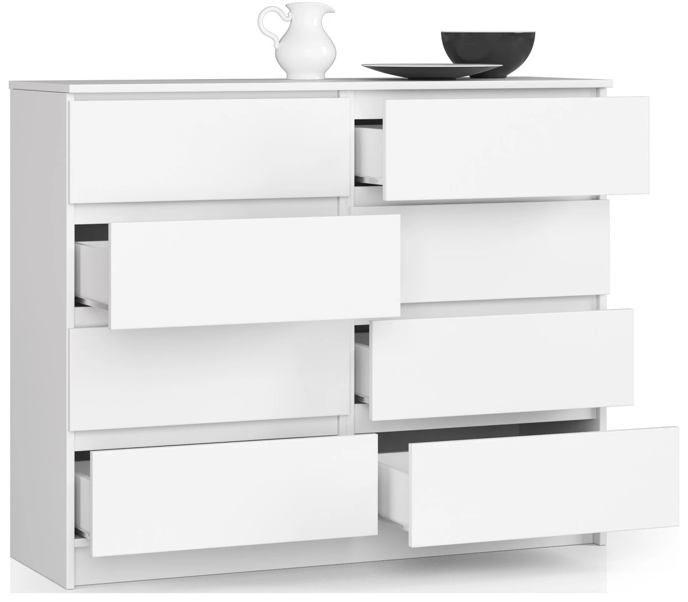 Aprašymas buvo automatiškai išverstas, gali pasitaikyti klaidų. Labai erdvi baltos spalvos komoda yra įdomus pasiūlymas, kurį galima sėkmingai naudoti tiek biuruose, tiek gyvenamosiose patalpose, pavyzdžiui, miegamuosiuose, svetainėse ar koridoriuose. Baldai pagaminti iš geros kokybės laminuotos plokštės, kurios storis – šešiolika milimetrų. Ši medžiaga pasižymi dideliu atsparumu pažeidimams, todėl komoda tampa patraukli net ir po ilgo naudojimo. Šiuolaikinės komodos pasižymi paprastumu ir elegancija. Tai ir parengėme pasiūlymą, kurio dėka tam tikroje patalpoje bus galima laikyti daug reikalingų daiktų. Baldai susideda net iš šešių erdvių stalčių, o visuma patogu naudotis kasdien. Baltos spalvos įrangos elementą galima įsigyti už konkurencingą kainą. - Komoda pagaminta iš laminuotos plokštės, atspari trinčiai - Stalčių fasadai pagaminti iš laminuotos lenta - Stalčiai juda ant metalinių ritinėlių kreiptuvų - Kraštai padengti ABS briauna, kuri užtikrina aukštą apsaugą nuo pažeidimų - Savaime surenkama komoda stalčiai - Pristatymo vadovas - Garantija 24 mėn.