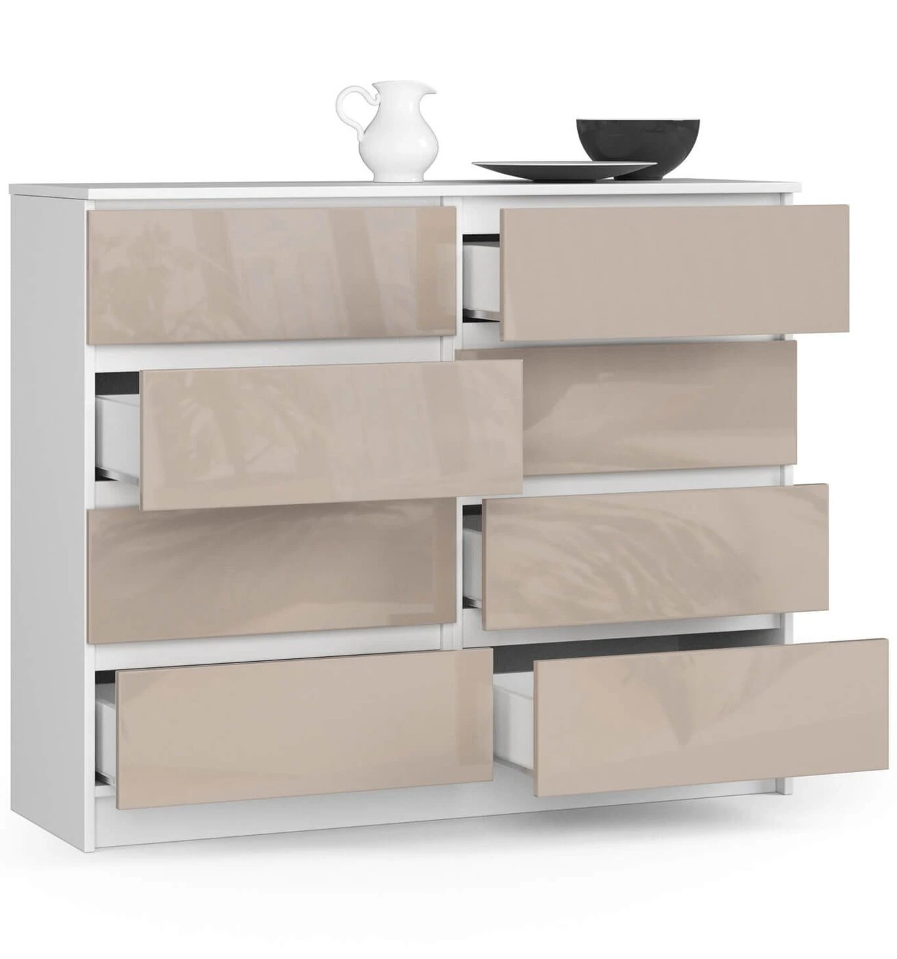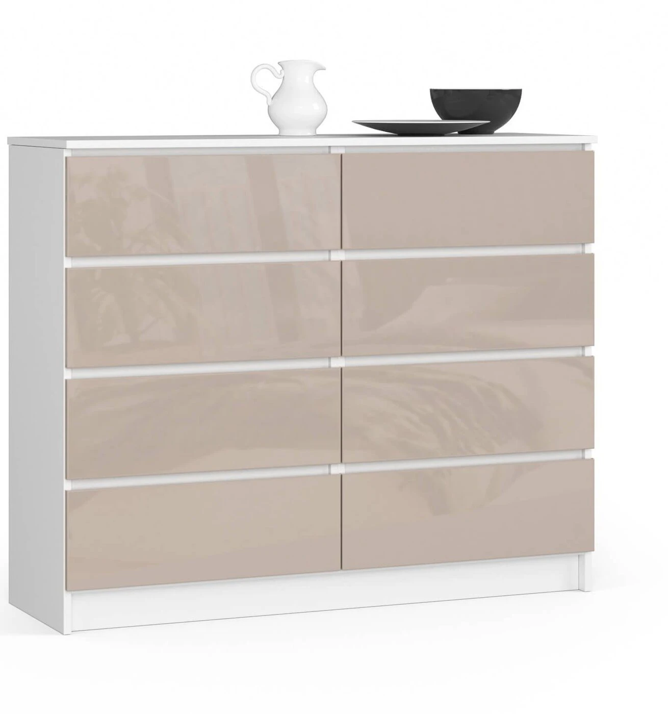 Aprašymas buvo automatiškai išverstas, gali pasitaikyti klaidų. – Komodos korpusas pagamintas iš laminuotos plokštės balto kilimėlio, atsparus dilimui 16 mm - Priekiniai skydai pagaminti iš 19 mm AKRYL plokštės su CAPPUCCINO blizgiu dekoru – Stalčiai juda ant metalinių ritinėlių kreiptuvų - Kraštai padengti ABS briauna, užtikrinančia aukštą apsaugą nuo pažeidimų - Savarankiškai surenkama komoda - Pristatyme pateikiamos instrukcijos - 24 mėnesių garantija > s pan>
