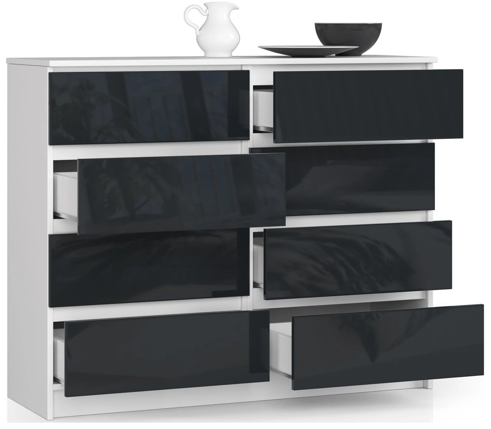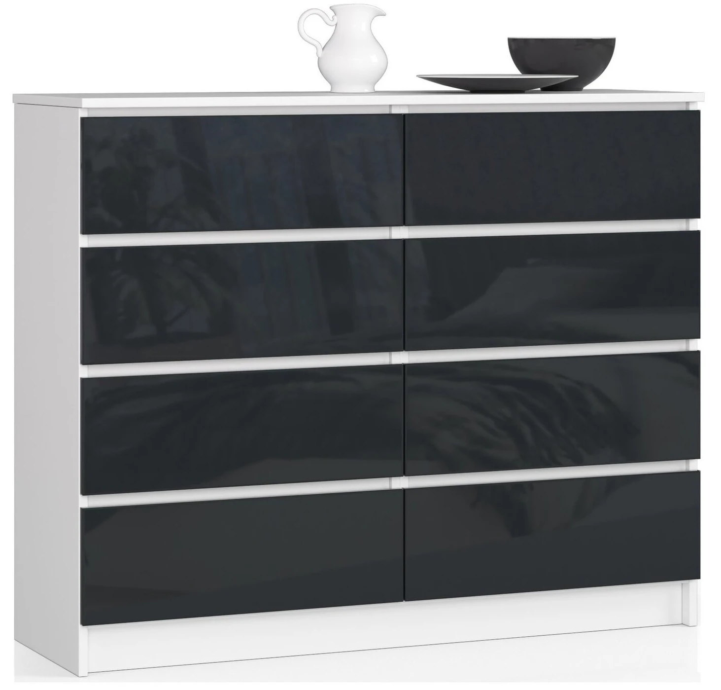 Aprašymas buvo automatiškai išverstas, gali pasitaikyti klaidų. – Komodos korpusas pagamintas iš laminuotos plokštės balto kilimėlio, atsparus dilimui 16 mm - Fasadas pagamintas iš ACRYL 19 mm plokštės su blizgiu grafito dekoru – Stalčiai juda ant metalinių ritinėlių kreiptuvų - Kraštai padengti ABS briauna, užtikrinančia aukštą apsaugą nuo pažeidimų - Savarankiškai surenkama komoda - Pristatyme pateikiamos instrukcijos - 24 mėnesių garantija