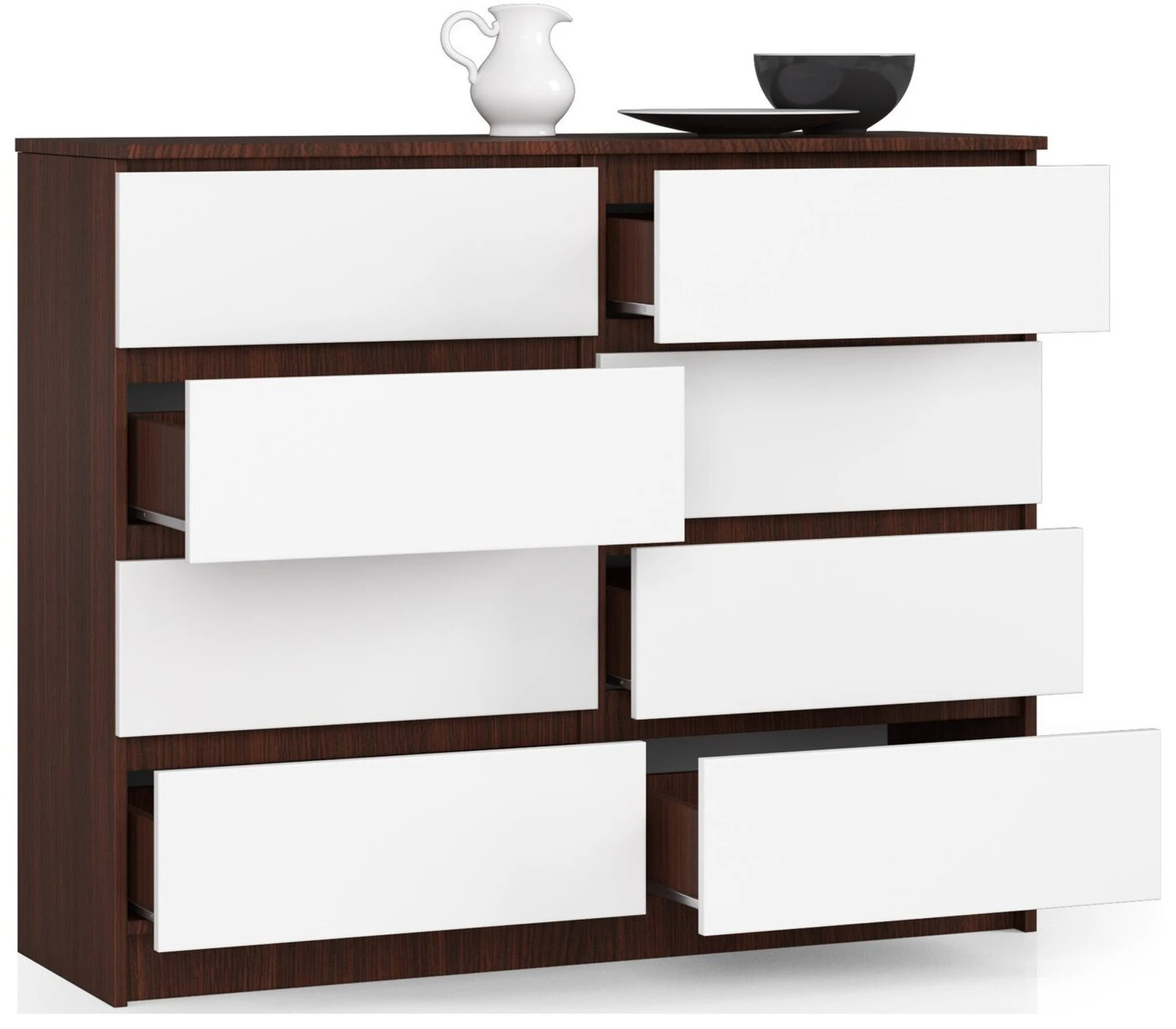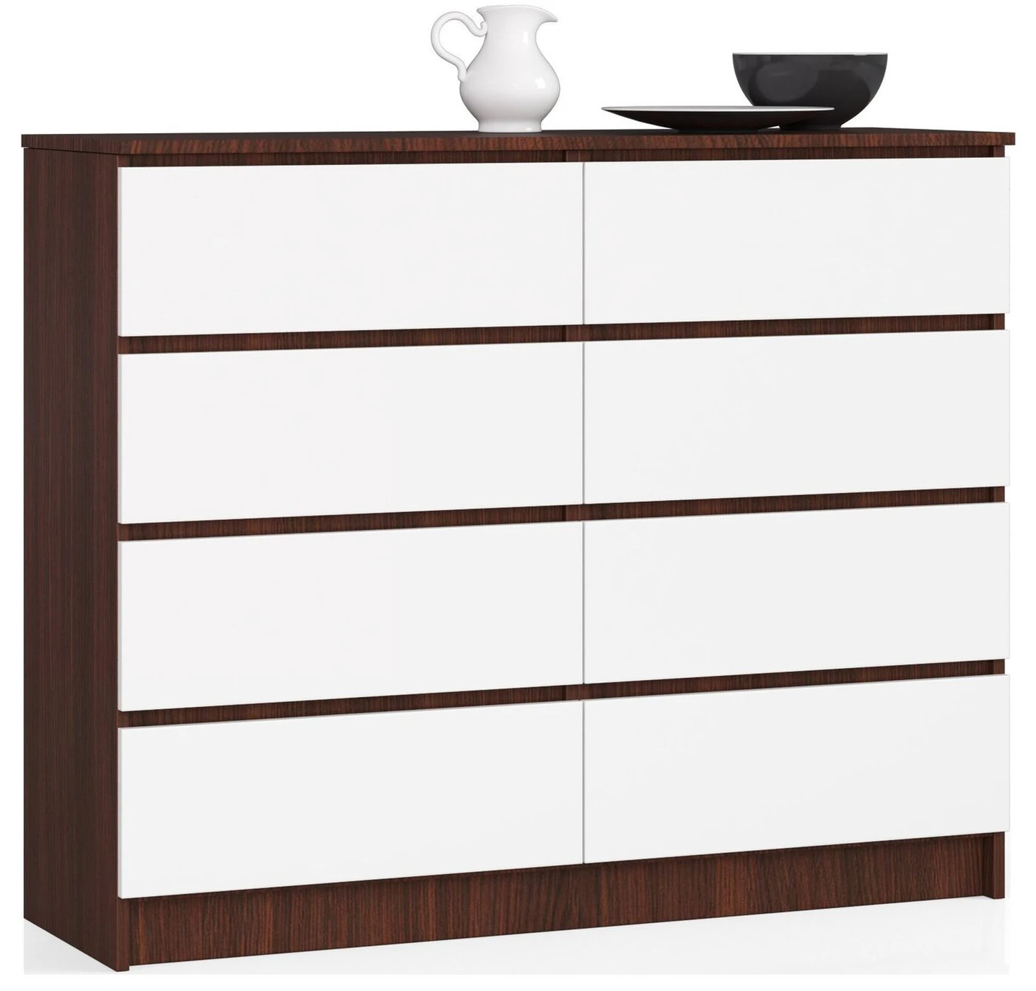 Aprašymas buvo automatiškai išverstas, gali pasitaikyti klaidų. Graži kambario komoda su aštuoniais stalčiais yra puikus pasiūlymas bet kurioje svetainėje. Baltų fasadų ir nesenstančios wenge spalvos korpusų derinys suteikia įdomų efektą, kuris neabejotinai patiks tiek modernių įrengimų entuziastams, tiek tradiciškai įrengtiems kambariams. Verta paminėti, kad baldas yra ne tik patrauklus, bet visų pirma yra puikios kokybės. Patvarios, patvarios ir atsparios medžiagos, kurios buvo naudojamos gamybos metu, tikrai pateisins Jūsų lūkesčius. Komoda taip pat gali būti naudojama valgomajame, miegamajame ar biuro kambaryje. Baldai pagaminti iš laminuotos plokštės, o kraštai padengti ABS briauna, užtikrinančia aukštą apsaugą nuo pažeidimų. Komoda skirta montuoti savarankiškai. Aštuoni praktiški stalčiai juda ant metalinių ritinėlių. Raginame pasinaudoti parengtu pasiūlymu, taip pat komodai rinktis kitus tos pačios kolekcijos įrangos elementus - Komoda iš trinčiai atsparios laminuotos plokštės - Stalčių fasadai iš laminuotos plokštės - Stalčiai eina ant metalinių ritinėlių kreiptuvų - Kraštai padengti ABS briauna, užtikrinančia aukštą apsaugą nuo pažeidimų - Savarankiškai surenkama komoda - Pridedamos instrukcijos - Garantija 24 mėnesiai