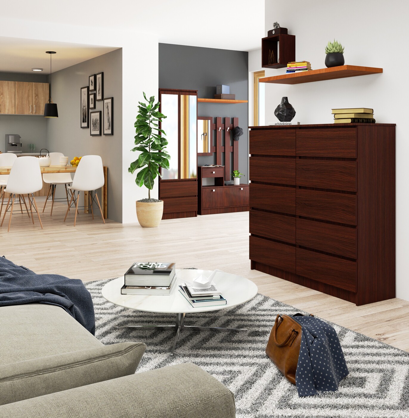 Aprašymas buvo automatiškai išverstas, gali pasitaikyti klaidų. Wenge komoda – pasiūlymas žmonėms, vertinantiems klasikinį grožį, stilingą interjerą, paprastumą, bet kartu ir nepaprastą eleganciją. Mūsų siūlomi baldai bus naudojami daugelyje gyvenamųjų patalpų, taip pat biuro interjeruose. Praktiška 120 centimetrų ilgio K komoda neužima daug vietos ir gali sutalpinti daug tam tikroje patalpoje reikalingų daiktų. Erdvūs stalčiai, paprastas mechanizmas ir lengvas valymas – tai tik dalis daugelio mūsų siūlomų baldų privalumų. Patraukli kaina derinama su labai gera kokybe Mūsų internetinėje parduotuvėje rasite daug įdomių pasiūlymų patraukliomis kainomis. Viena jų – 120 centimetrų ilgio komoda K. Jis buvo pagamintas iš 16 milimetrų storio laminuotos plokštės, atsparios dilimui. Kraštai padengti ABS apvadu. Kiti baldų matmenys – aukštis: 121 centimetras ir gylis: 40 centimetrų. Wenge stiliaus komoda turėtų patikti žmonėms, vertinantiems nemirtingą klasiką ir eleganciją. Iš patvarios medžiagos pagamintas baldas Jums tikrai tarnaus ilgus metus. Raginame jį derinti su kitais šios serijos elementais, kuriuos taip pat rasite mūsų internetinėje parduotuvėje. Tikimės, kad šios kolekcijos baldai atitiks Jūsų lūkesčius dizaino, kokybės ir funkcionalumo prasme. Garantuojame konkurencingas kainas visam asortimentui. - Komoda iš trinties atspari laminuota lenta - Stalčių fasadai pagaminti iš laminuotos plokštės - Stalčiai juda ant metalinių ritinėlių kreiptuvų - Kraštai padengti ABS briauna, užtikrinančia aukštą apsaugą nuo pažeidimų - Savaime surenkama dėžė stalčių - Pristatymo vadovas - Garantija 24 mėn.