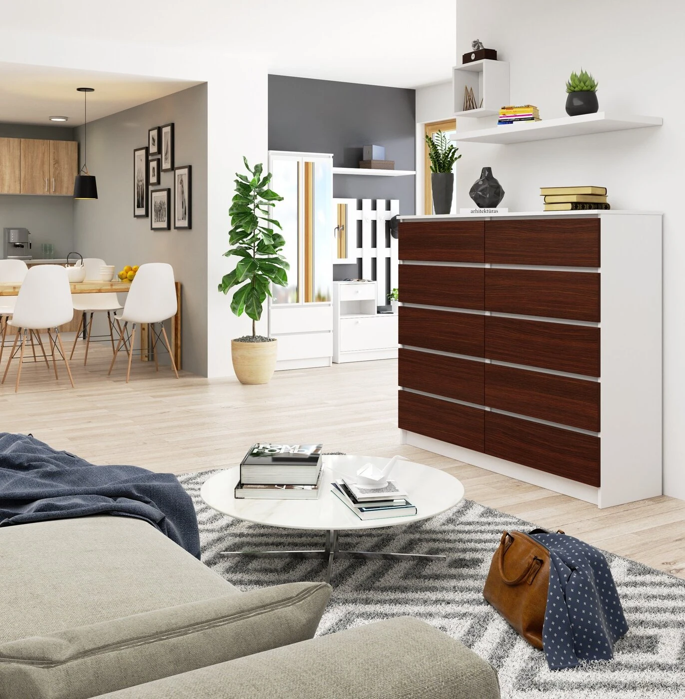 Aprašymas buvo automatiškai išverstas, gali pasitaikyti klaidų. - Komoda iš dilimui atsparios laminuotos plokštės - Stalčių fasadai pagaminti iš laminuotos plokštės - Stalčiai eina ant metalinių ritinėlių - Kraštai padengti ABS briauna, užtikrinančia aukštą apsaugą nuo pažeidimų - Savarankiškai surenkama komoda - Pristatymo vadovas - Garantija 24 mėn.