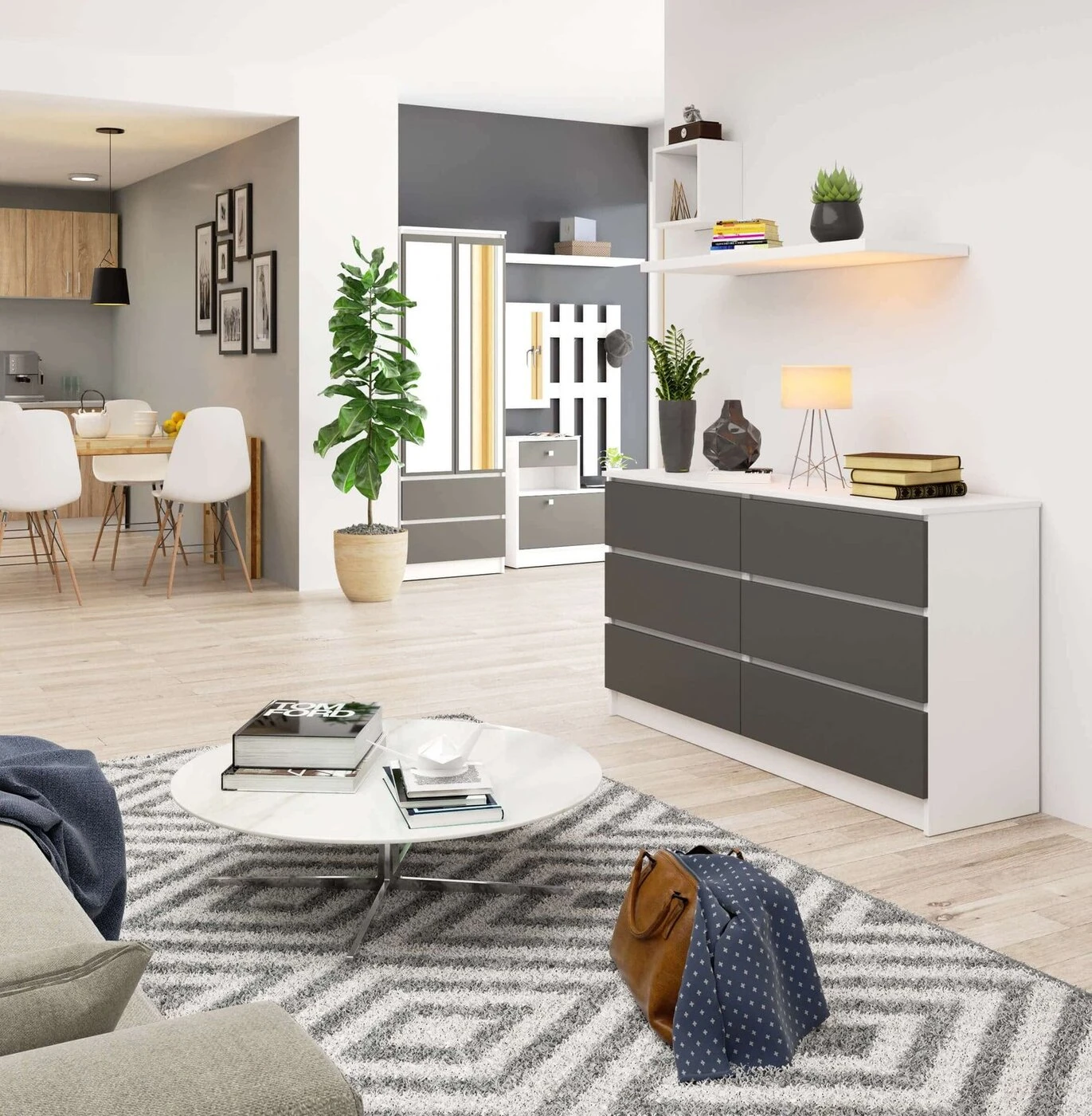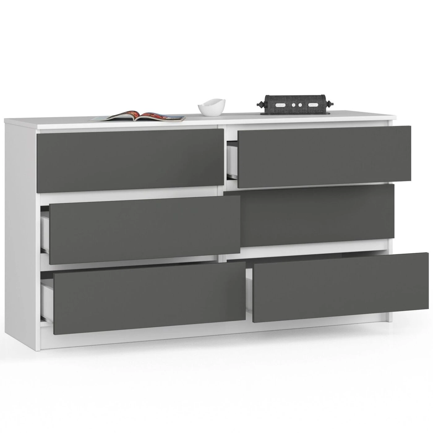 Aprašymas buvo automatiškai išverstas, gali pasitaikyti klaidų. - Komoda pagaminta iš trinčiai atsparios laminuotos plokštės - Stalčių fasadai iš laminuotos plokštės - Stalčiai eina ant metalinių ritinėlių kreiptuvų - Kraštai padengti ABS briauna, užtikrinančia aukštą apsaugą nuo pažeidimų - Savarankiškai surenkama komoda - Pristatyme pateikiamos instrukcijos – 24 mėnesių garantija