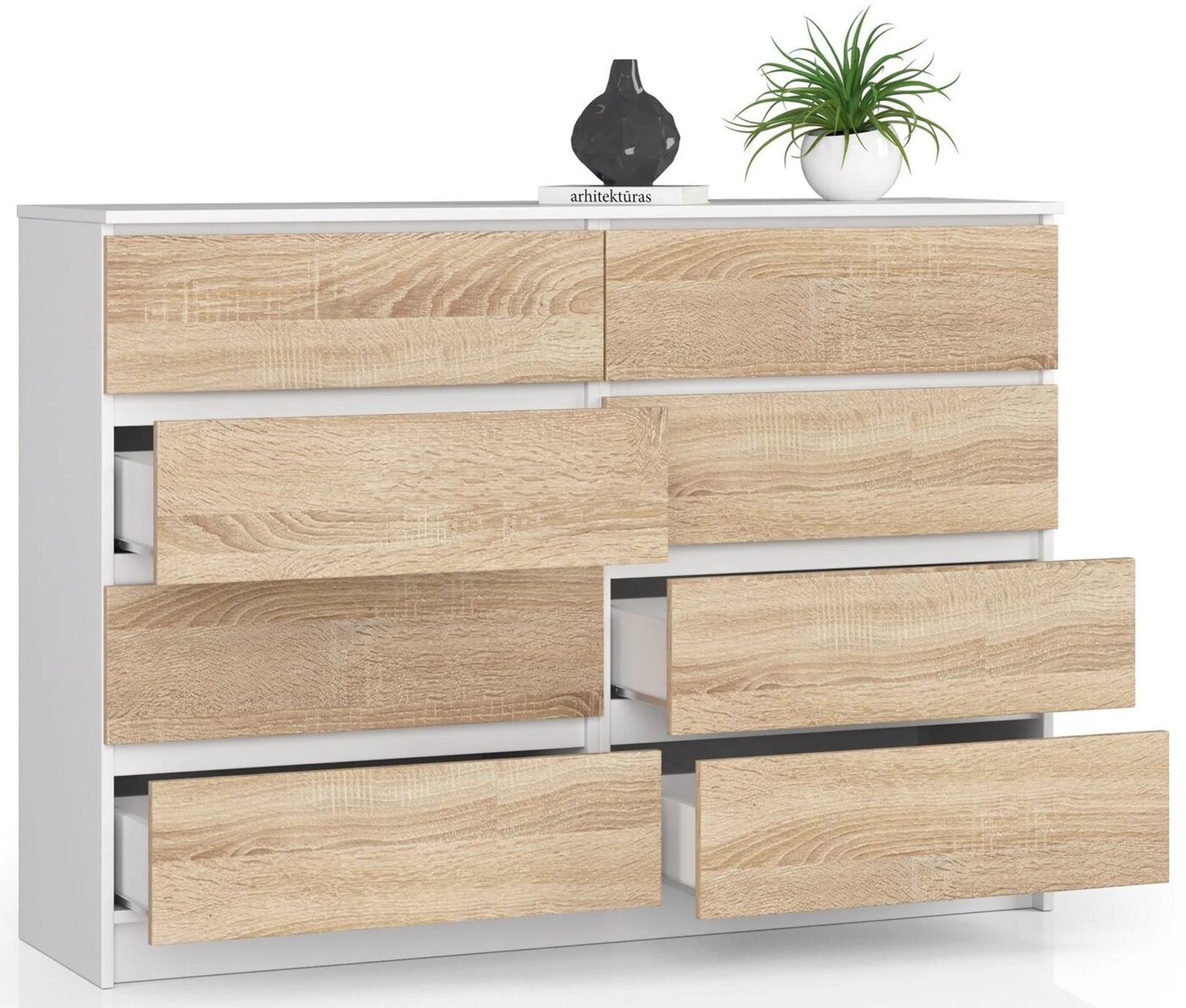 Aprašymas buvo automatiškai išverstas, gali pasitaikyti klaidų. - Komoda pagaminta iš trinčiai atsparios laminuotos plokštės - Stalčių fasadai iš laminuotos plokštės - Stalčiai eina ant metalinių ritinėlių kreiptuvų - Kraštai padengti ABS briauna, užtikrinančia aukštą apsaugą nuo pažeidimų - Savarankiškai surenkama komoda - Pristatyme pateikiamos instrukcijos – 24 mėnesių garantija