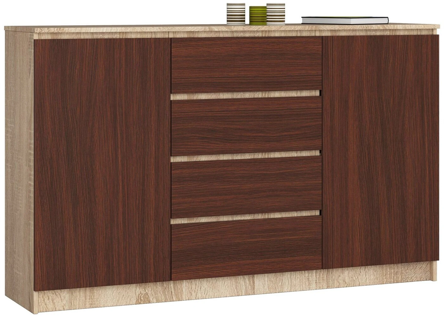 Aprašymas buvo automatiškai išverstas, gali pasitaikyti klaidų. Didelė 160 centimetrų pločio komoda yra tvirtos struktūros gaminys, pagamintas iš geros kokybės laminuotos plokštės. Tai atspari trinčiai medžiaga, todėl komoda puikiai atrodo net ir po ilgo naudojimo. Kaip turėtų atrodyti tobulos komodos? Visų pirma kokybė, bet ir nemokamas naudojimas bei nepriekaištingas dizainas. Tai yra mūsų pasiūlymo ypatybės, kurios puikiai tiks biure ar namuose, nustebindamos lengvu valymu ir funkcionalumu. Už puikią kainą prieinamoje komplektacijoje dera dvi madingos spalvos, kurias noriai renkasi mūsų internetinėje parduotuvėje besilankantys klientai. Garantuojame patvarius ir atsparius baldus už bet kokį biudžetą. - Komoda iš aukštos kokybės 16 mm dilimui atsparios laminuotos plokštės, gamintojas Kronospan - Stalčių fasadai pagaminti iš laminuotos plokštės - Stalčiai juda ant metalinių ritinėlių kreiptuvų - Kraštai padengti ABS briauna, užtikrinančia aukštą apsaugą nuo pažeidimų - Kiekvienos durelės viduje yra po vieną lentyną p> - Savarankiškai surenkama komoda - Instrukcija pridedama - Garantija 24 mėn.