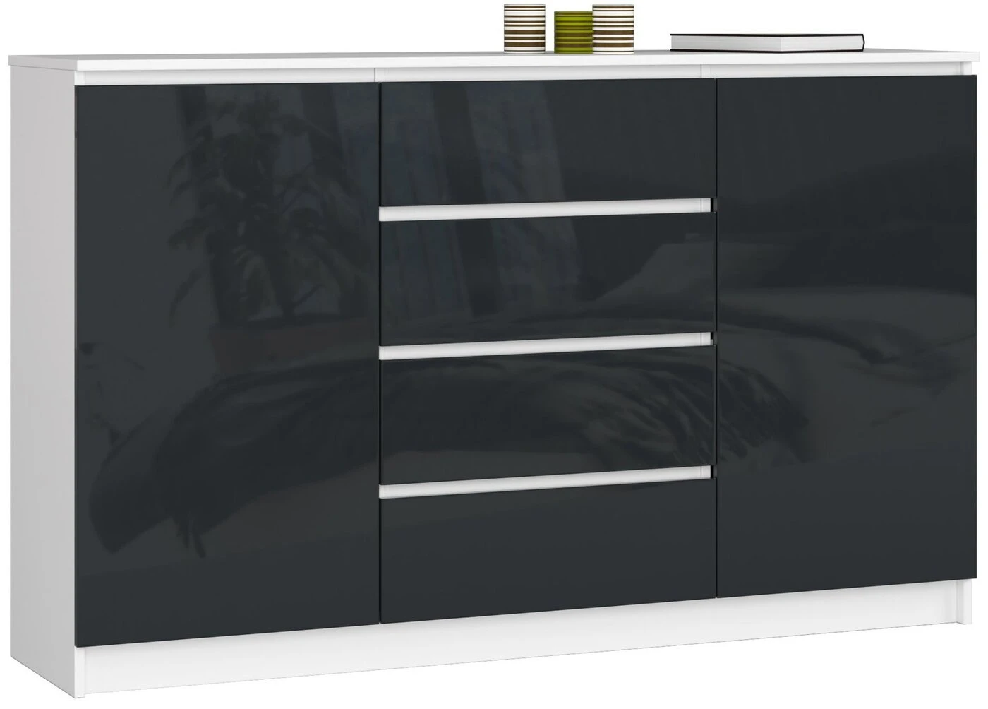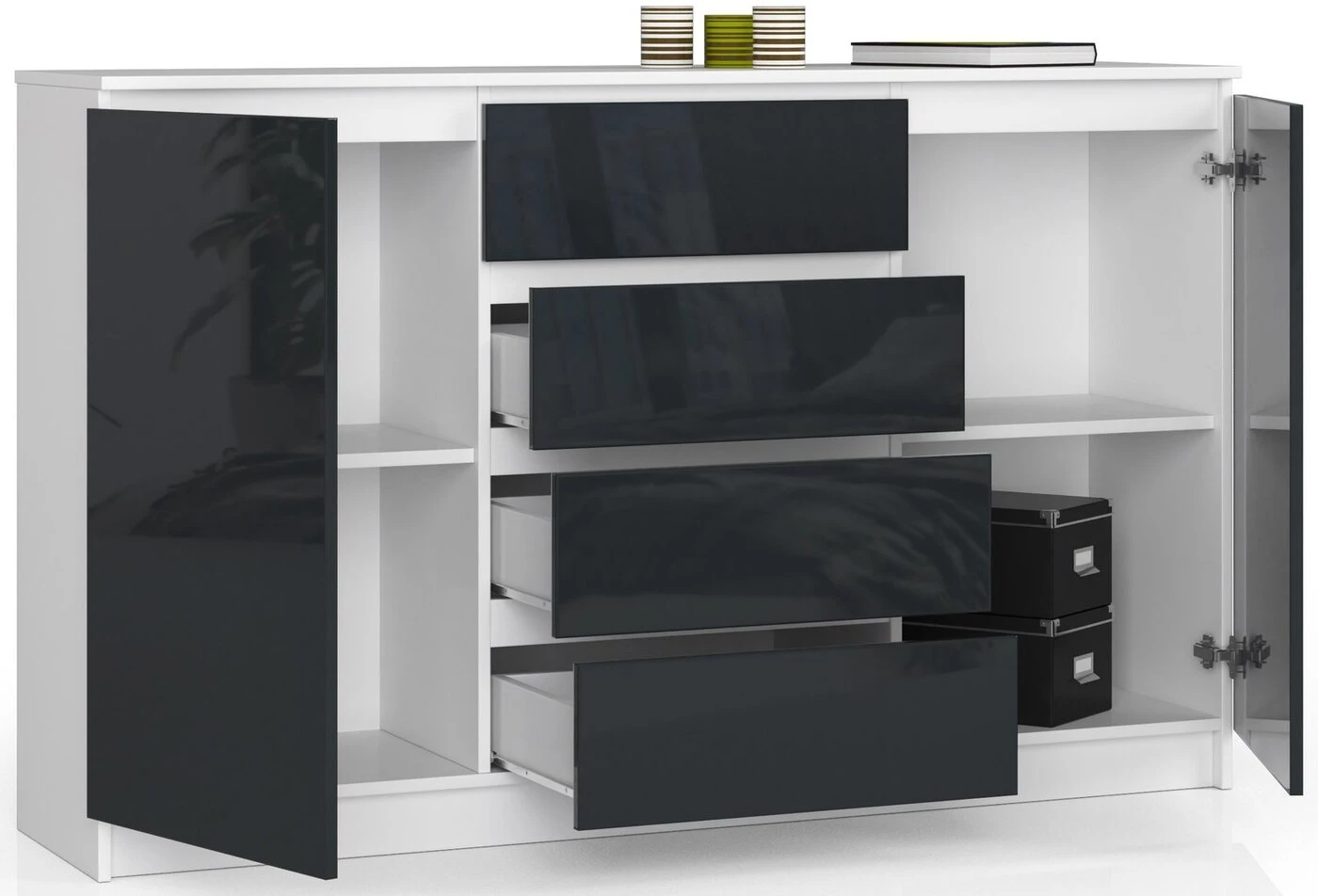 Aprašymas buvo automatiškai išverstas, gali pasitaikyti klaidų. - Komodos korpusas pagamintas iš 16 mm baltos pusiau matinės laminuotos plokštės , atsparus trinčiai - Priekiniai skydai pagaminti iš AKRYL 19 mm plokštės su blizgiu grafito dekoru - Stalčiai yra ant metalinių ritinėlių kreipiančiųjų - kraštai padengti ABS briauna, kad būtų gerai apsaugota nuo pažeidimų - savaime -surinkimo komoda - Pristatymo vadovas - Garantija 24 mėn.