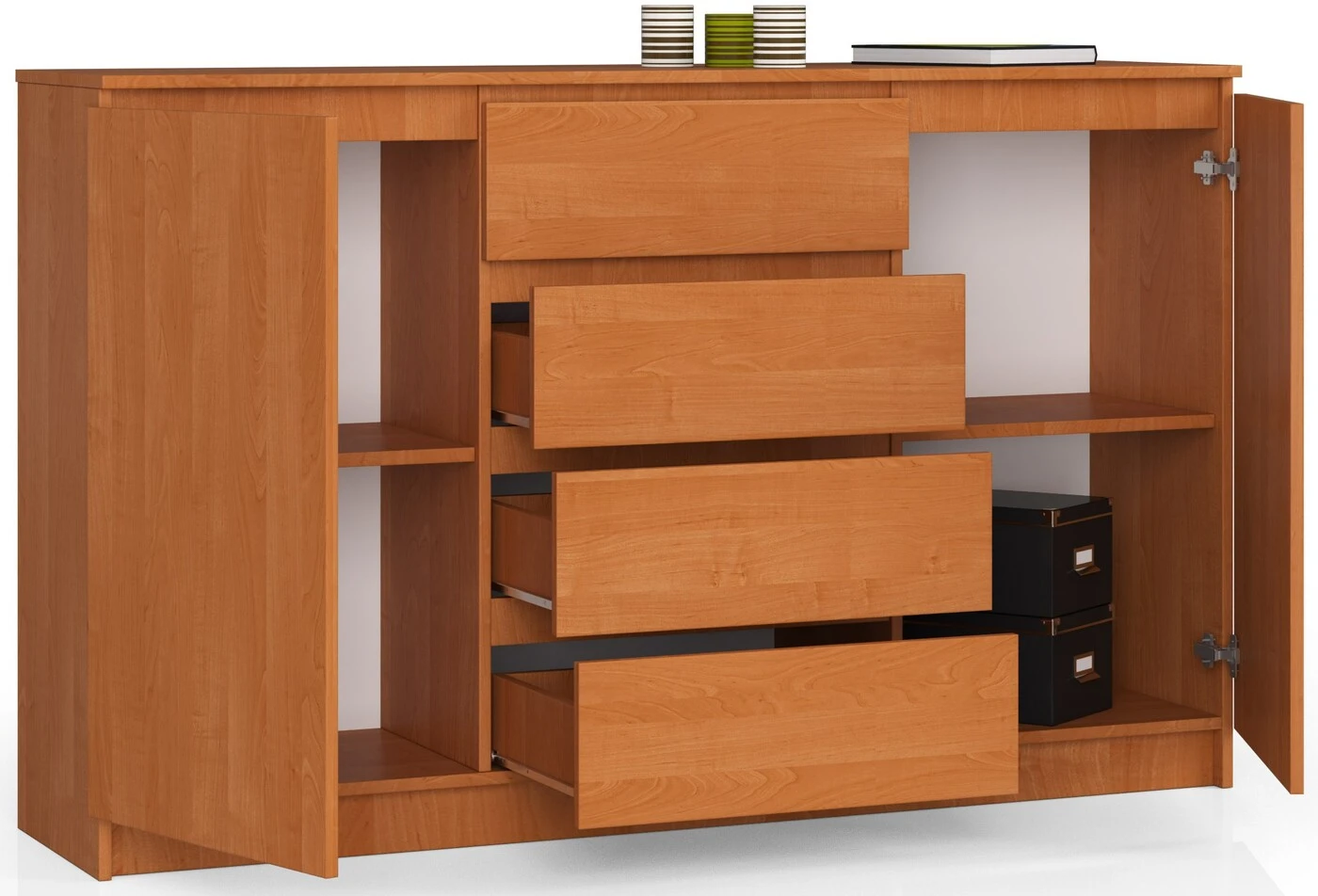 Aprašymas buvo automatiškai išverstas, gali pasitaikyti klaidų. Paprastos komodos yra baldai, kurie šiuo metu yra geidžiamiausi sprendimai – tiek gyvenamosioms, tiek biuro patalpoms. Klasikinio grožio, neutralių spalvų K160 komoda – tai pasiūlymas, pasižymintis paprasta forma, funkcionalumu ir solidžia struktūra. Šio modelio dėka Jūsų tvarkomoje patalpoje bus galima susidėti spintos daiktus, biuro reikmenis, taip pat daug kitų reikalingų daiktų. Estetiškai pagaminta komoda gražiai atrodys tamsiuose ir šviesiuose, moderniuose ir tradiciškai įrengtuose interjeruose. Jame yra keturi stalčiai ir dvi rakinamos spintelės, kuriose tikrai tilps daug smulkmenų. Baldus galima įsigyti mūsų internetinėje parduotuvėje už palankią kainą. – Komoda iš aukštos kokybės 16 mm dilimui atsparios laminuotos plokštės, gamintojas kronospan - Stalčių fasadai pagaminti iš laminuotos plokštės - Stalčiai juda ant metalinių ritinėlių kreiptuvų. - Kraštai padengti ABS briauna, kad būtų apsaugota nuo pažeidimų. > - Kiekvienos durelės viduje yra viena lentyna - Savarankiškai surenkama komoda - Instrukcija pridedama - Garantija 24 mėn.