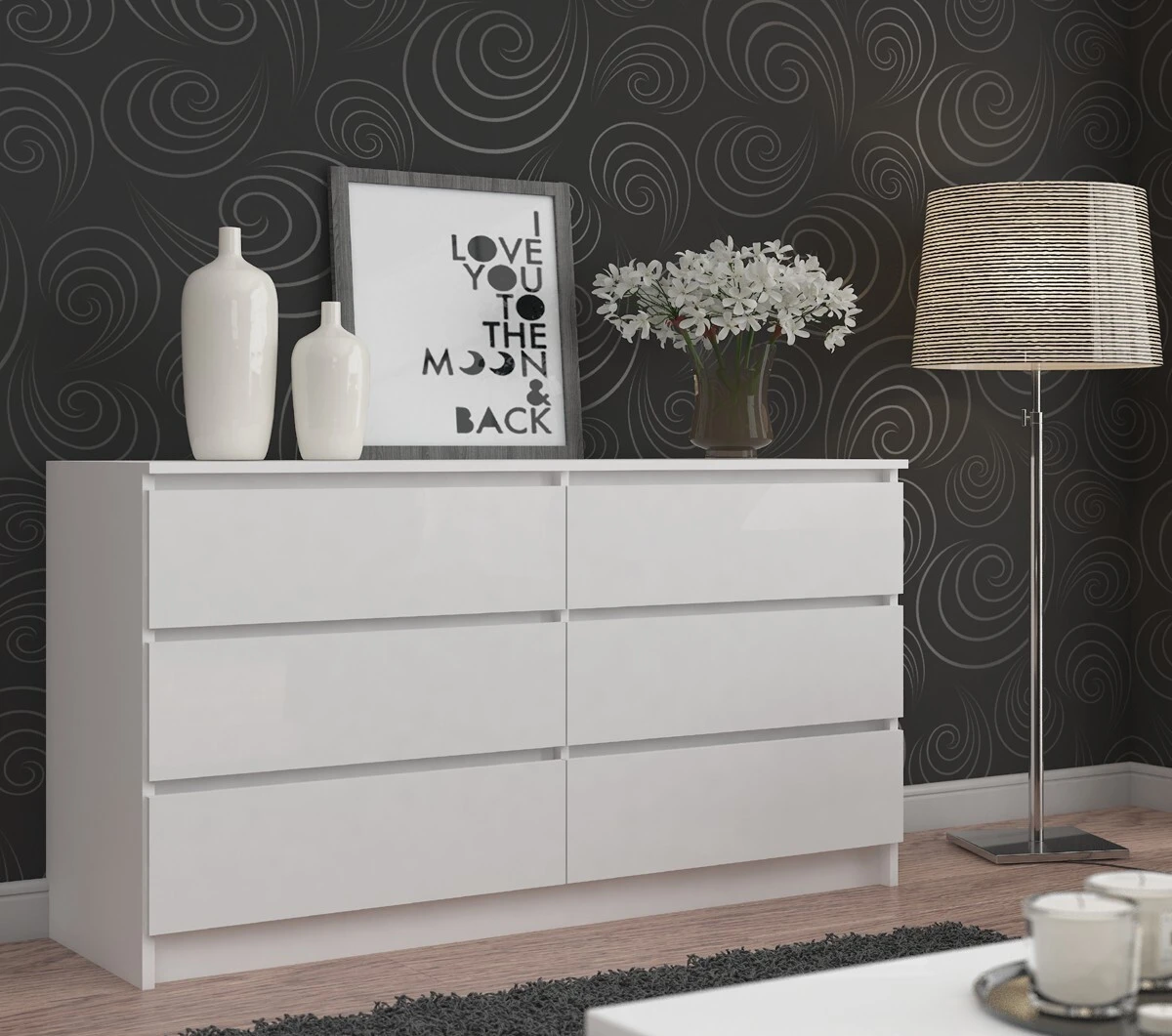 Aprašymas buvo automatiškai išverstas, gali pasitaikyti klaidų. Klasikiškai graži balta komoda yra vienas iš daugelio įdomių mūsų internetinės parduotuvės pasiūlymų. Baldai susideda iš šešių erdvių stalčių. Kiekvienas iš jų lengvai sutalpins visus reikalingus daiktus tam tikroje patalpoje. Komoda puikiai atrodys ne tik svetainėje, bet ir vaikų ar jaunimo kambaryje. Be to, jis gali būti naudojamas miegamajame, svečių kambaryje, valgomajame, hole, taip pat negyvenamose patalpose – pavyzdžiui, viešbučiuose ar biuruose. Aukšta kokybė už prieinamą kainą Mūsų siūloma komoda išsiskiria iš konkurentų patrauklios kainos ir puikios kokybės deriniu. Produktas buvo pagamintas labai atsargiai ir pasižymi tvirta struktūra. 160 centimetrų pločio K komoda pagaminta iš 16 milimetrų storio laminuotos plokštės. Tai rodo didelį atsparumą dilimui. Kraštai padengti ABS apvadu. Komoda yra 77 cm aukščio ir 40 cm gylio. Nesenstanti ir universali balta spalva Baltą spalvą visada vertina žmonės, kurie rengia savo svajonių interjerus. Jis yra praktiškas, lengvai valomas, taip pat puikiai dera su kitomis spalvomis. Nesenstanti ir universali balta spalva puikiai atrodys tiek klasikinio stiliaus kambariuose, tiek tipiškai moderniame interjere. Maloniai raginame susipažinti su kitais šios išskirtinai gražios kolekcijos pasiūlymais. - Komoda pagaminta iš trinčiai atsparios laminuotos plokštės - Stalčių fasadai iš laminuotos plokštės - Stalčiai eina ant metalinių ritinėlių kreiptuvų - Kraštai padengti ABS briauna, užtikrinančia aukštą apsaugą nuo pažeidimų - Indauja atskiram surinkimui - Pridedamos instrukcijos - Garantija 24 mėn.