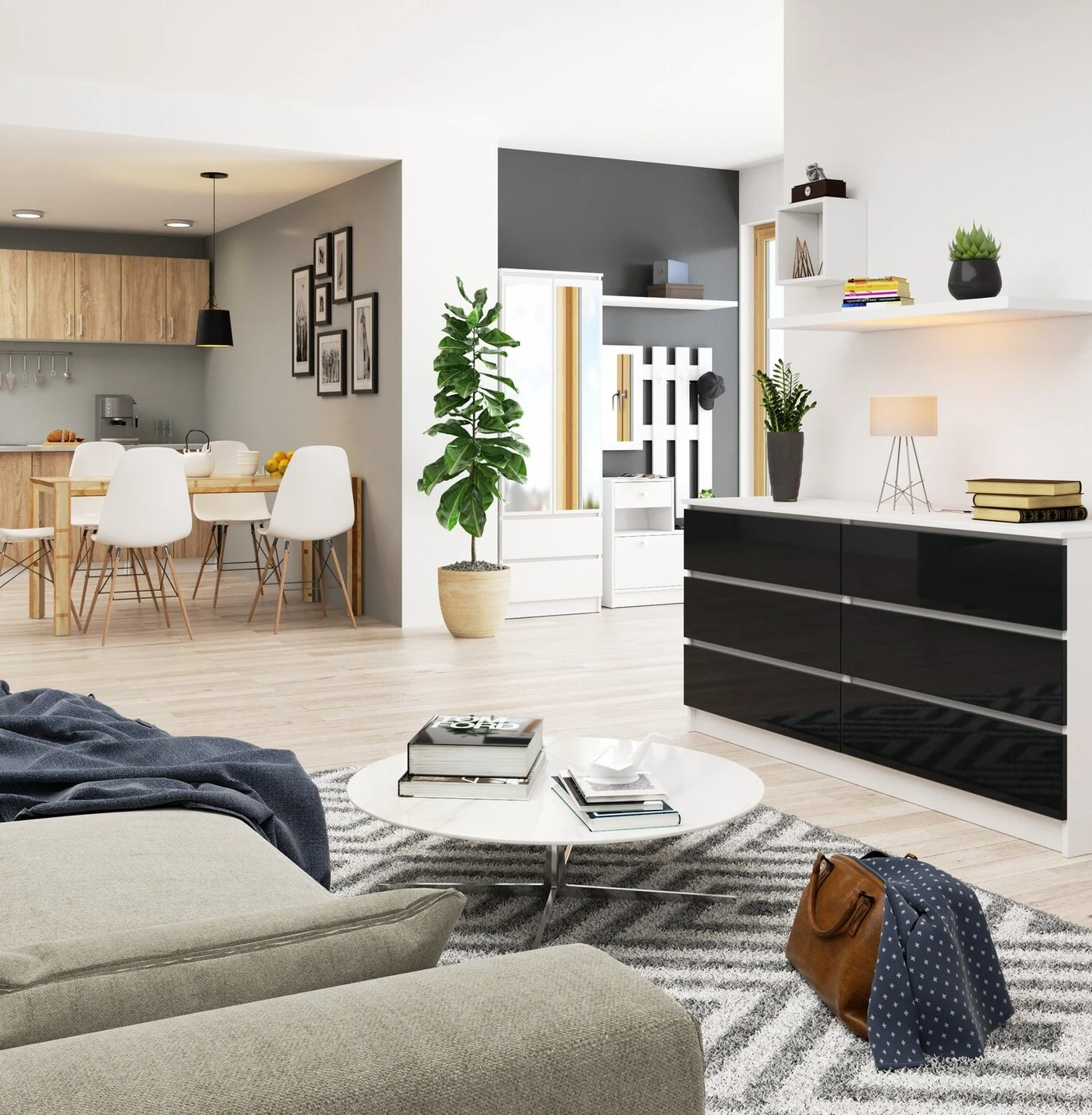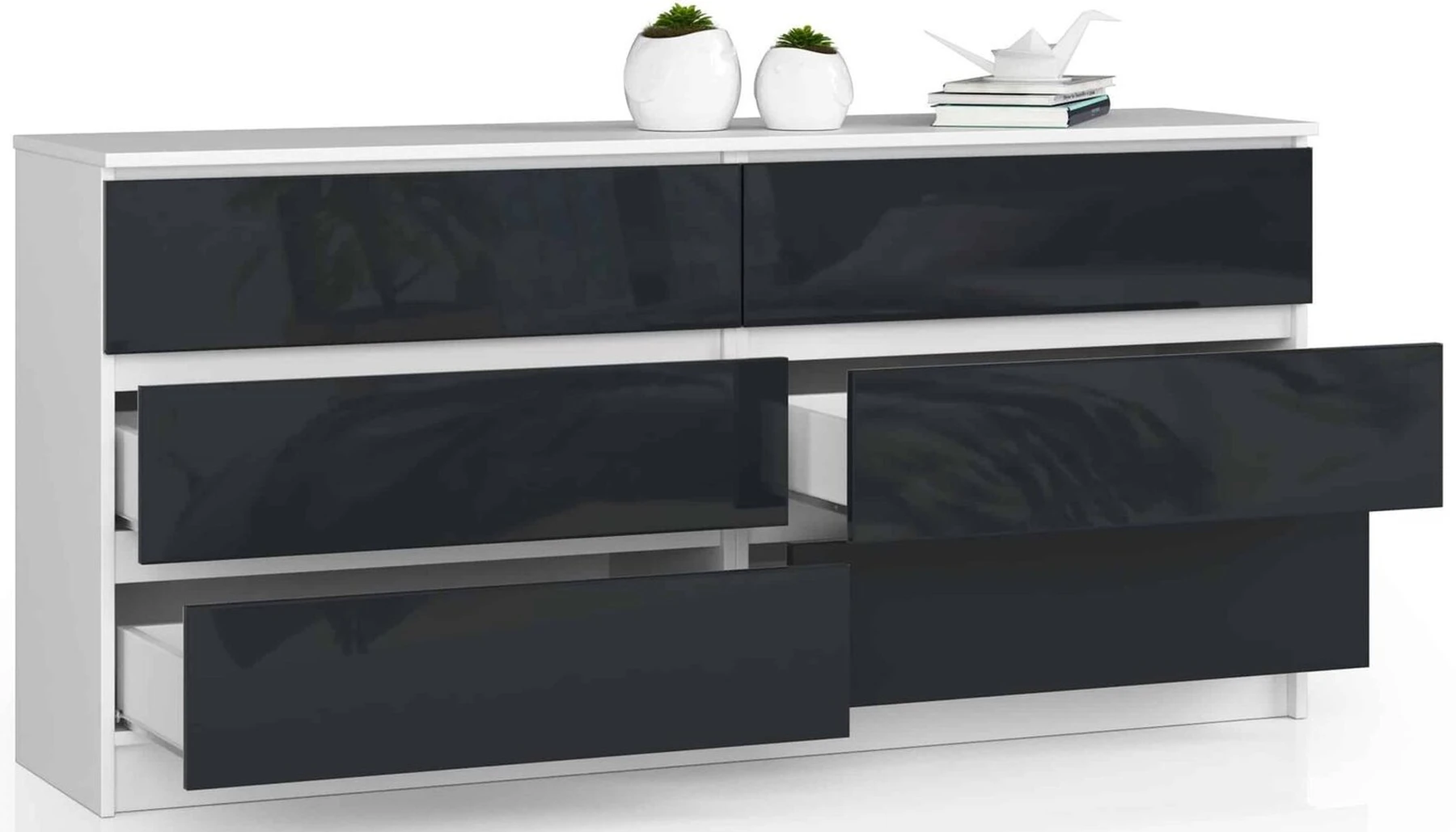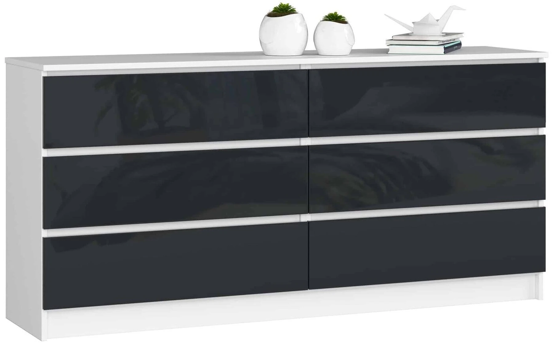Aprašymas buvo automatiškai išverstas, gali pasitaikyti klaidų. - Komodos korpusas pagamintas iš laminuotos plokštės balto kilimėlio 16mm atsparus trinčiai - Fasadai pagaminti iš 19mm AKRYL plokštės su grafito blizgiu dekoru - Stalčiai juda ant metalinių slankiojančių ritinėlių - Kraštai padengti ABS briauna, užtikrinančia aukštą apsaugą nuo pažeidimų - Savarankiškai surenkama komoda - Pateikta instrukcija – 24 mėnesių garantija