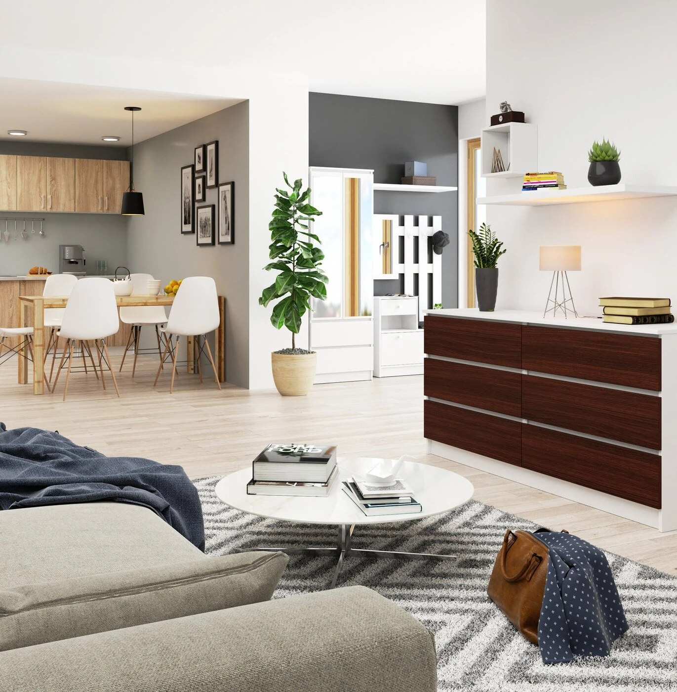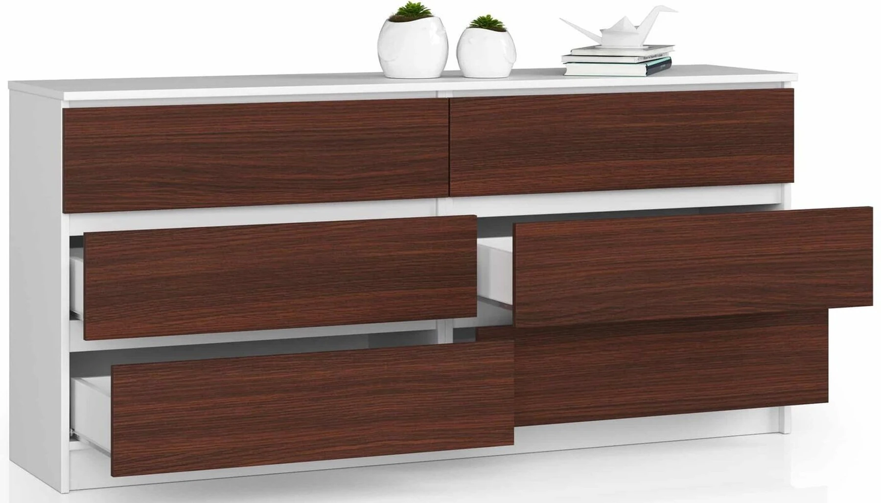 Aprašymas buvo automatiškai išverstas, gali pasitaikyti klaidų. Mūsų parduotuvės siūloma 160 cm komoda yra puikus baldas, kuriuo galėsite įrengti svetainę. Komoda tiks tiek skandinavišku stiliumi sutvarkytoje svetainėje, tiek industriniame interjere. Mūsų gaminys pagamintas iš aukštos kokybės laminuotos plokštės, kuri yra visiškai atspari dilimui. Be to, iš šios lentos gaminami ir visi stalčių fasadai bei durelės, kurios suteikia garantiją, kad komoda tarnaus Jums ilgus metus. Mūsų gaminys išsiskiria ne tik aukšta darbo kokybe . Jam būdingos savybės: - pagamintas iš laminuotos plokštės, - gaminys tinkamas montuoti savarankiškai, - stalo kraštai yra padengti ABS apvadu, – stilinga ir madinga išvaizda. Šioje komodoje yra šeši didelės talpos stalčiai. Stalčiai veikia ant metalinių ritinėlių kreiptuvų. Tai neabejotinai padidina šių baldų naudojimo patogumą. Dėl to, kad kraštai yra padengti ABS briauna, šis gaminys garantuoja daug didesnį atsparumą bet kokiems pažeidimams, įlenkimams ir sumušimams.