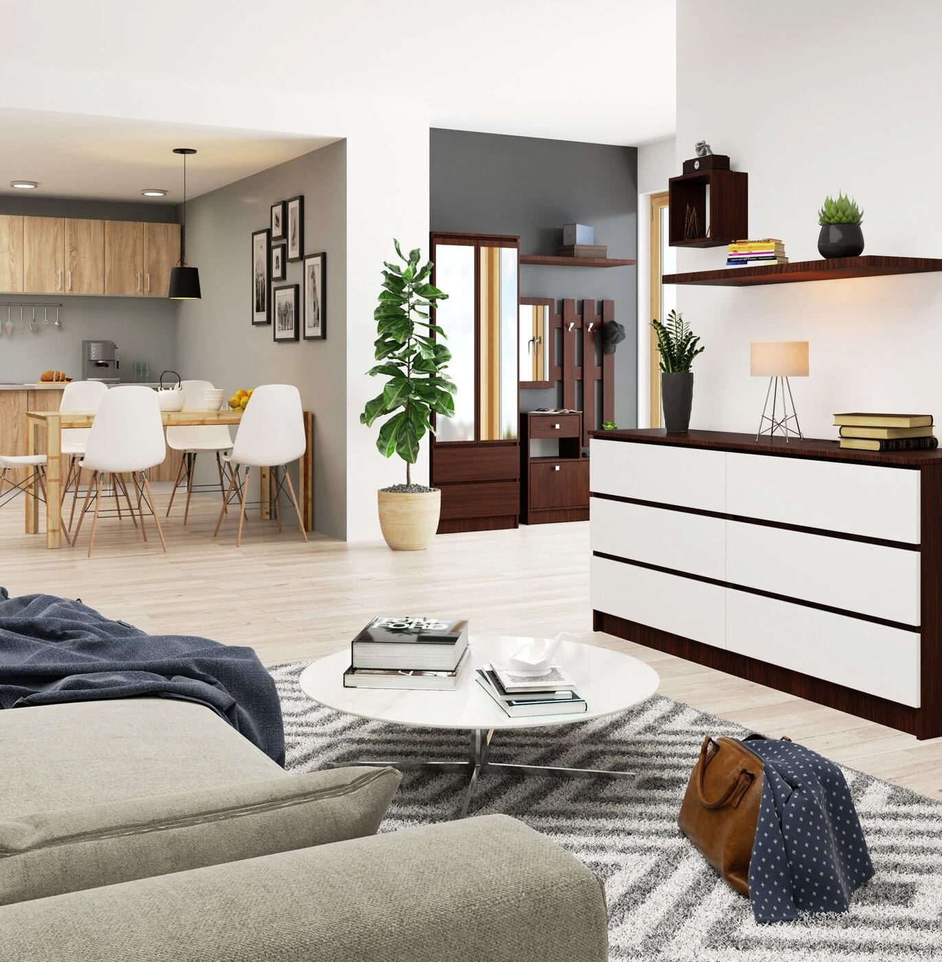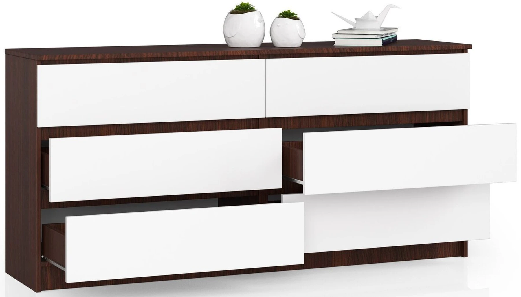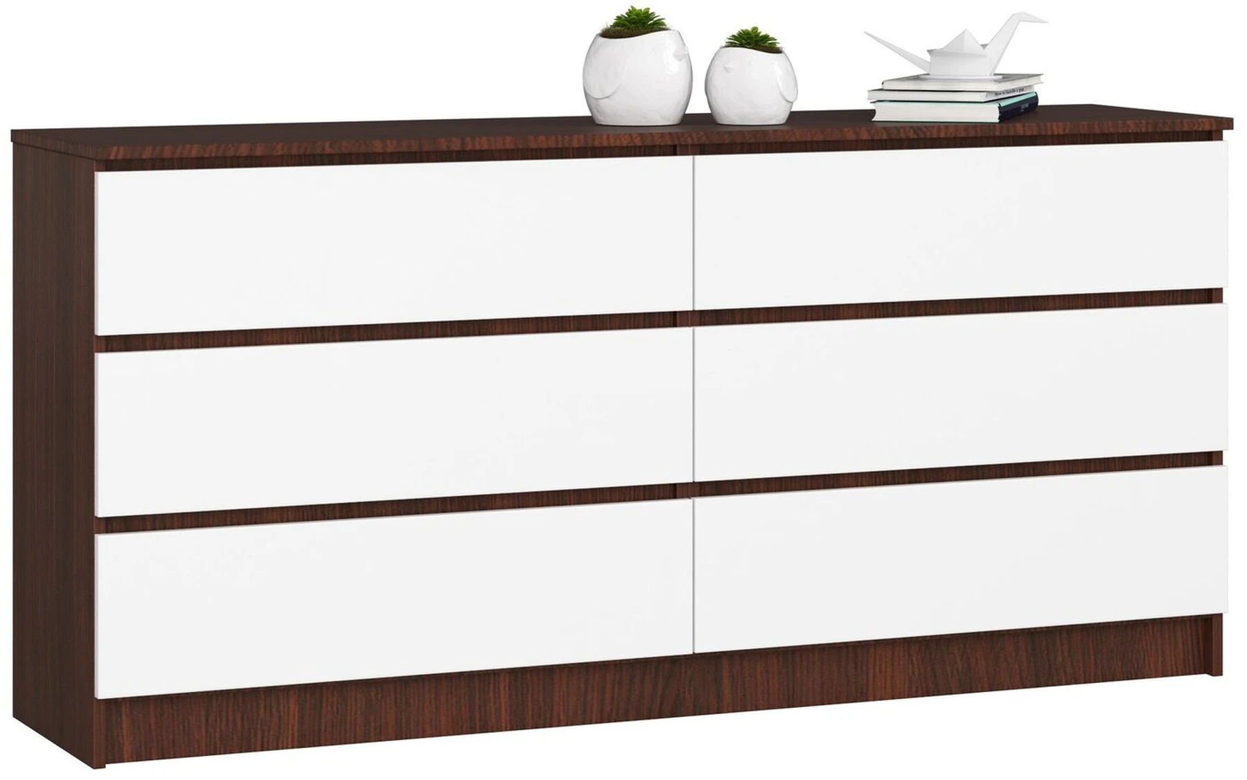Aprašymas buvo automatiškai išverstas, gali pasitaikyti klaidų. 160 centimetrų pločio komoda K – tai pasiūlymas žmonėms, kurie savo namuose tvarko biuro kambarį ar interjerą, kuris negali praleisti populiariausių baldų tipas, kuris yra neabejotinai komoda. Modernus dizainas, puiki kokybė Pasiūlymą, kurį parengėme atsižvelgdami į savo klientus, šioje komodoje yra net šeši praktiški, labai erdvūs stalčiai. Jie gali laikyti daug reikalingų daiktų tam tikroje patalpoje. Gaminys pagamintas iš laminuotos plokštės, kurios talpa 16 milimetrų, yra atspari dilimui ir labai patvari. Baldo kraštai padengti ABS apvadu. Įdomios komodos spalvos, susidedančios iš dviejų spalvų – nemirtingos klasikos, t.y. nesenstančios baltos ir universalios bei madingos wenge spalvos, nusipelno dėmesio. Universalus charakteris, puikus funkcionalumas Universalus baldo pobūdis leidžia juos naudoti bet kokiu pasirinktu būdu. Komoda tiks biuro ar viešbučio kambaryje, taip pat svetainėje, miegamajame ar kitame gyvenamojo pobūdžio interjere. Jis labai funkcionalus, jį lengva valyti. Mūsų parengtame pasiūlyme rasite daug kitų įrangos elementų iš šios neįprastos ir populiarios kolekcijos. Raginame daugiau sužinoti apie mūsų pasiūlymus ir pasirinkti baldus, kurie geriausiai atitinka jūsų individualius lūkesčius. - Komoda pagaminta iš dilimui atsparios laminuotos plokštės - Stalčių fasadai iš laminuotos plokštės - Stalčiai yra ant metalinių ritinėlių kreiptuvų - Kraštai padengti ABS briauna, užtikrinančia aukštą apsaugą nuo pažeidimai - Savarankiškai surenkama komoda - Pridedamos instrukcijos - Garantija 24 mėn.