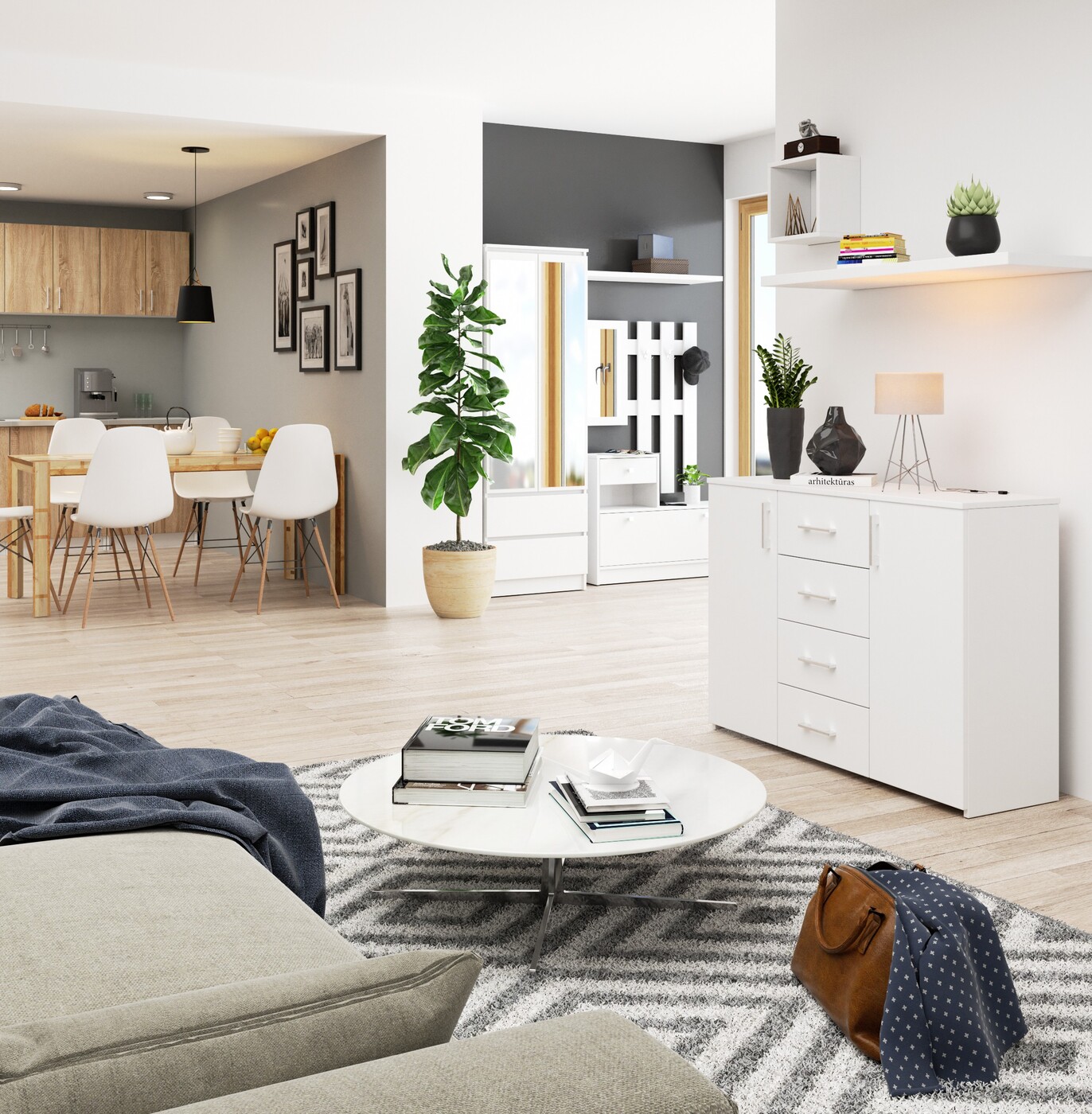 Aprašymas buvo automatiškai išverstas, gali pasitaikyti klaidų. - Komoda iš dilimui atsparios laminuotos plokštės - Stalčių fasadai pagaminti iš laminuotos plokštės - Stalčiai yra ant metalinių ritinėlių - durelių viduje yra viena lentyna - Stalviršis, šonai ir fasadai uždengti ABS briauna - Sidabrinės rankenos - Savarankiškai surenkama komoda - Instrukcija pridedama - Garantija 24 mėnesiai
