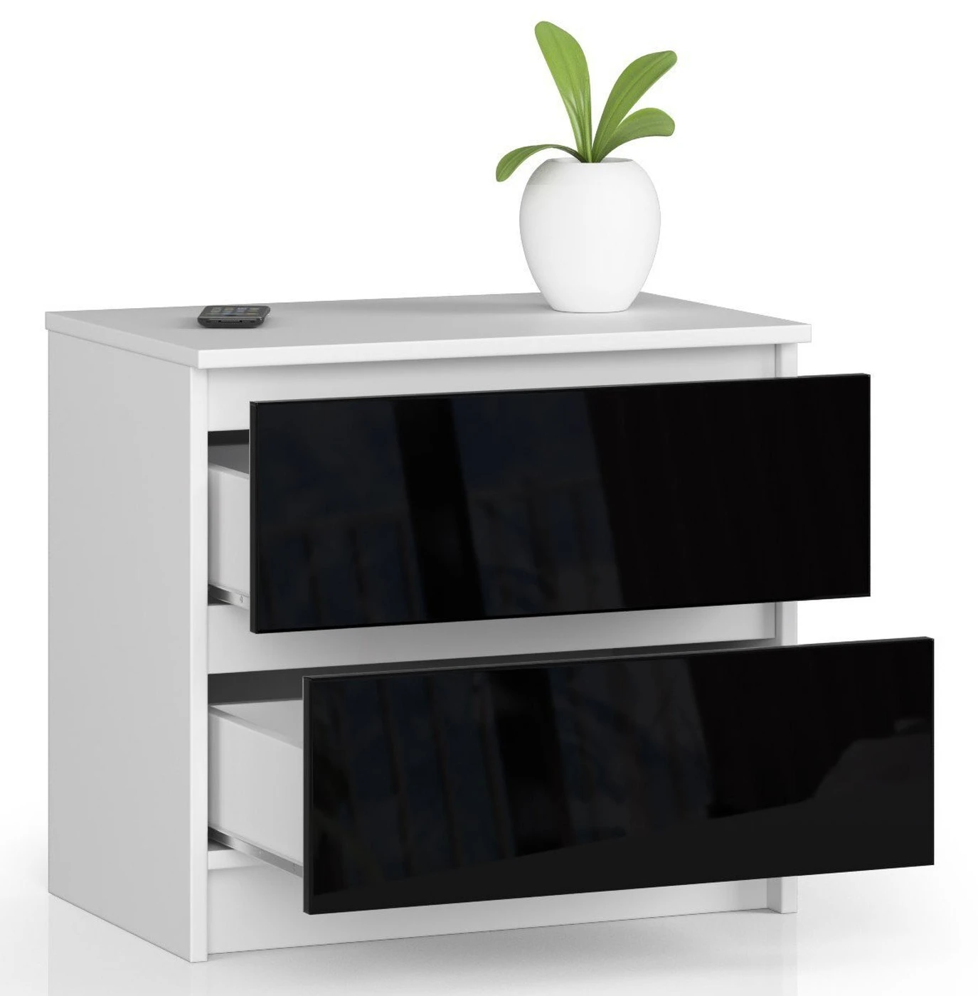 Aprašymas buvo automatiškai išverstas, gali pasitaikyti klaidų. - Komodos korpusas pagamintas iš laminuotos plokštės, baltas kilimėlis, atsparus trinčiai - Stalčių fasadai pagaminti iš MDF 19 mm AKRILO, labai blizgus – Stalčiai juda ant metalinių ritinėlių kreiptuvų - 24 mėnesių garantija