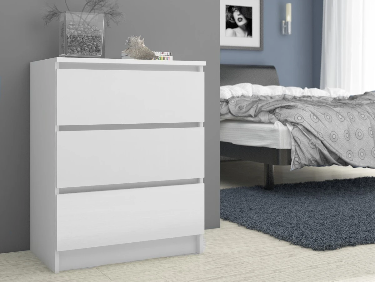 Aprašymas buvo automatiškai išverstas, gali pasitaikyti klaidų. Grožis slypi paprastume, kurį puikiai žinome, tiekdami jums gražiausius svetainės baldus. Vienas iš mūsų paruoštų pasiūlymų – įspūdinga balta 60 cm komoda, kurią tikrai įvertins skandinavišką stilių vertinantys žmonės. Baltos spalvos baldai pastaruoju metu labai išpopuliarėjo – nieko keisto: juose dera praktiškas naudojimas, universalumas ir patraukli išvaizda. Balta komoda su 3 stalčiais – tai pasiūlymas, kuris puikiai tiks tokiose patalpose kaip svetainės, miegamieji, jaunimo, svečių ir vaikų kambariai, miegamieji, valgomieji ir daugelis kitų. Jis taip pat gali būti sėkmingai naudojamas biure. Trys praktiški stalčiai lengvai sutalpins visus reikalingus daiktus. Komoda pagaminta iš 16 milimetrų storio laminuotos plokštės, kuri pasižymi padidintu atsparumu dilimui. Kraštai padengti ABS apvadu. Raginame pasinaudoti mūsų pasiūlymu. - Komoda pagaminta iš dilimui atsparios laminuotos plokštės - Stalčių fasadai iš laminuotos plokštės - Stalčiai juda ant metalinių ritinėlių kreiptuvų - Kraštai padengti ABS briauna, užtikrinančia aukštą apsaugą nuo pažeidimų - Komoda yra savarankiška -surinkimas - Instrukcijos pakuotėse - Garantija 24 mėn.