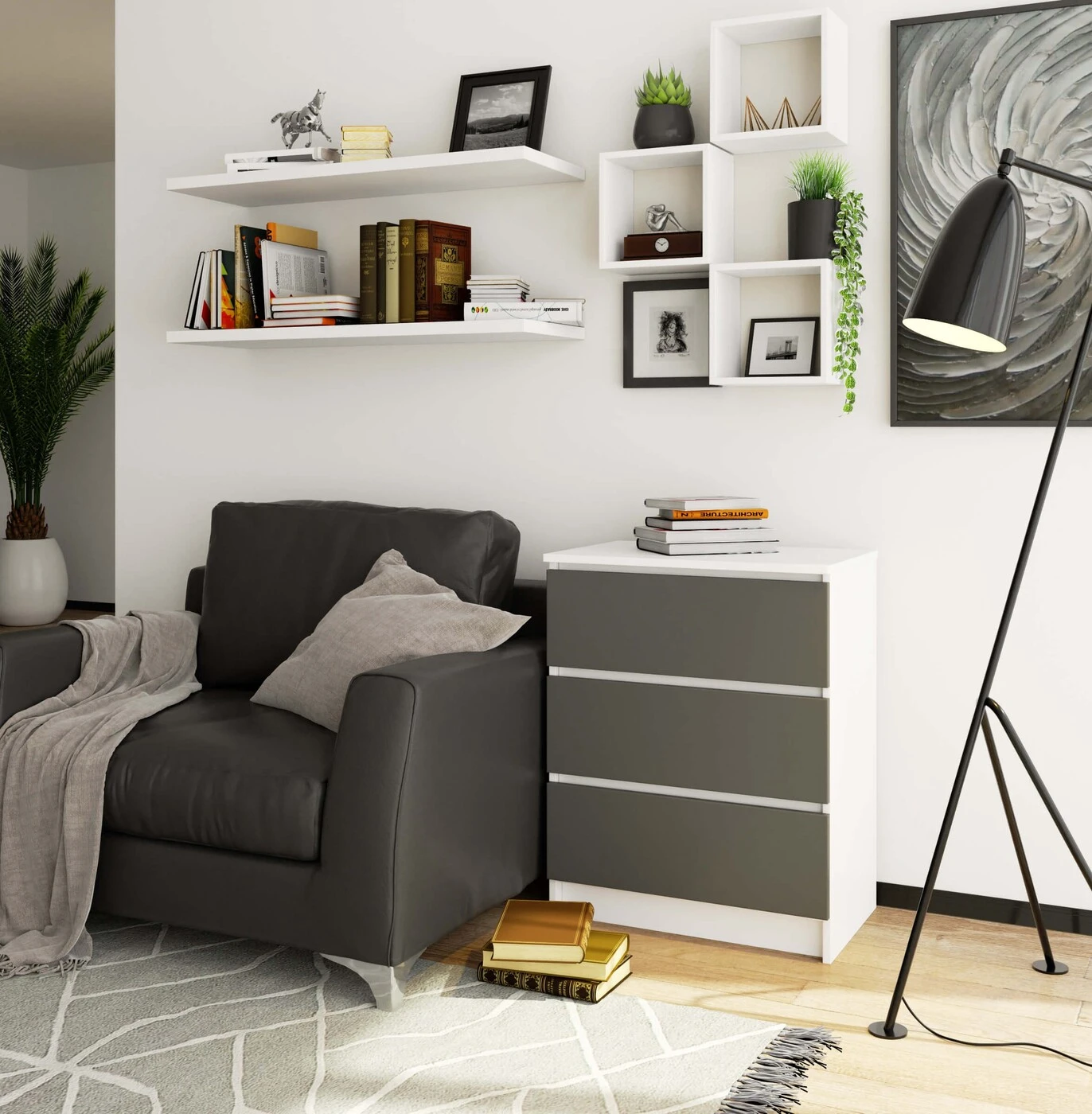 Aprašymas buvo automatiškai išverstas, gali pasitaikyti klaidų. - Komoda iš dilimui atsparios laminuotos plokštės - Stalčių fasadai iš laminuotos plokštės - Stalčiai yra ant metalinių ritinėlių kreiptuvų - Kraštai padengti ABS apvadu, užtikrinančiu aukštą apsaugą nuo pažeidimų - Savarankiškai surenkama komoda - Pateikiamos instrukcijos – 24 mėnesių garantija