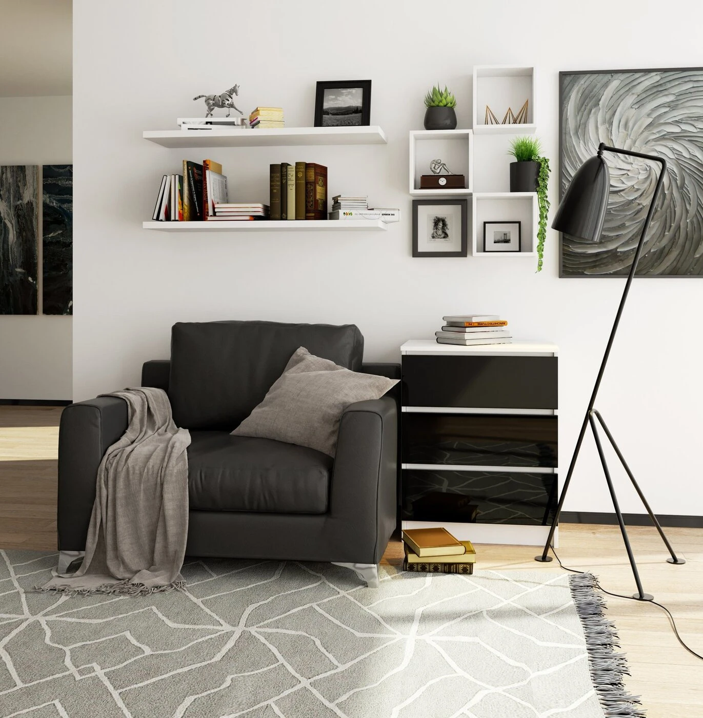 Aprašymas buvo automatiškai išverstas, gali pasitaikyti klaidų. - Komoda iš dilimui atsparios laminuotos plokštės - Priekiniai skydai pagaminti iš 19 mm MDF plokštės AKRILINIO JUODOS BIZDUS - Stalčiai yra ant metalinių ritinėlių - Kraštai padengti ABS briauna, kad būtų apsaugota nuo pažeidimų - Savarankiškai surenkama komoda - Pristatymo instrukcija - Garantija 24 mėn.